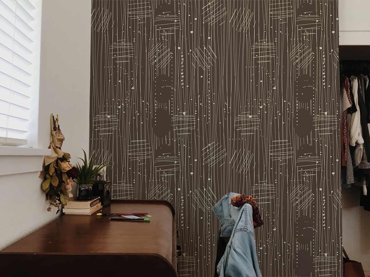 Si vous avez un mur fade qui a besoin de quelque chose de nouveau, alors cette ligne de papier peint en ligne est un choix idéal pour vous. Placez ce modèle de ligne répété autour de la pièce pour envelopper votre maison. La ligne blanche dessinant en contraste avec le fond de ton brun chocolat en fait un décor mural vétitile qui fonctionne parfaitement dans toutes vos chambres et peut être facilement assorti avec tous les meubles que vous avez déjà dans la maison.
