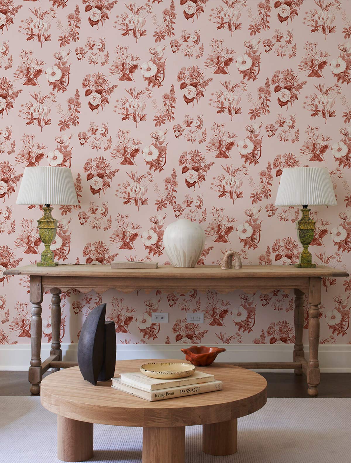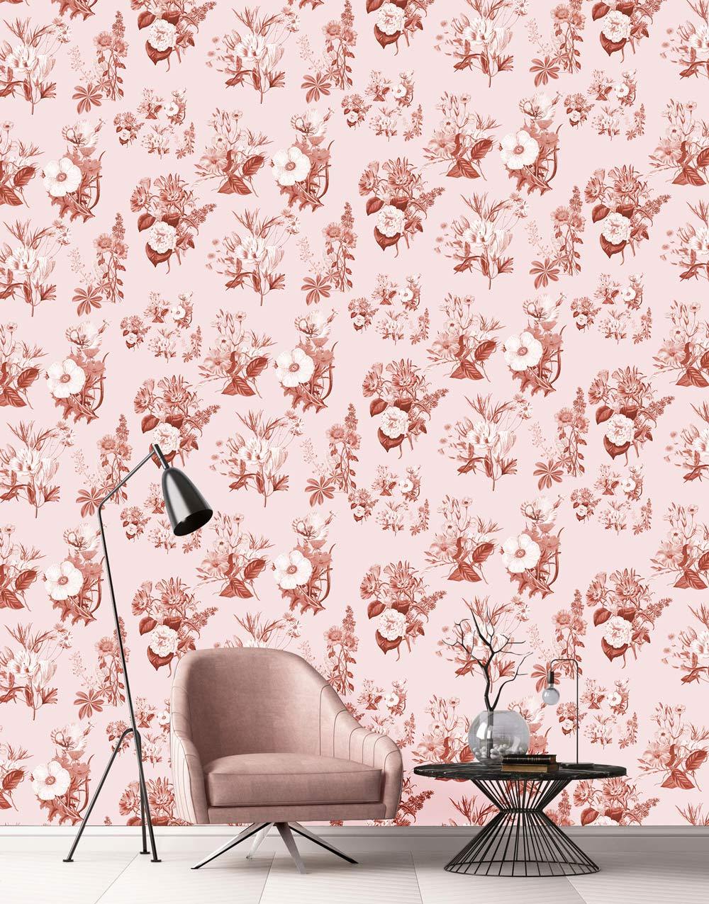 Ajoutez une teinte de fraîcheur avec ce papier peint de motif de fleur répété et une esthétique simple dans la toile de fond de couleur rose pur, à vos intérieurs. Orner votre chambre, votre salon ou la salle à manger avec cette conception naturelle de papier peint botanique pour réorganiser vos intérieurs. Fonctionne avec tous les types de styles de meubles.