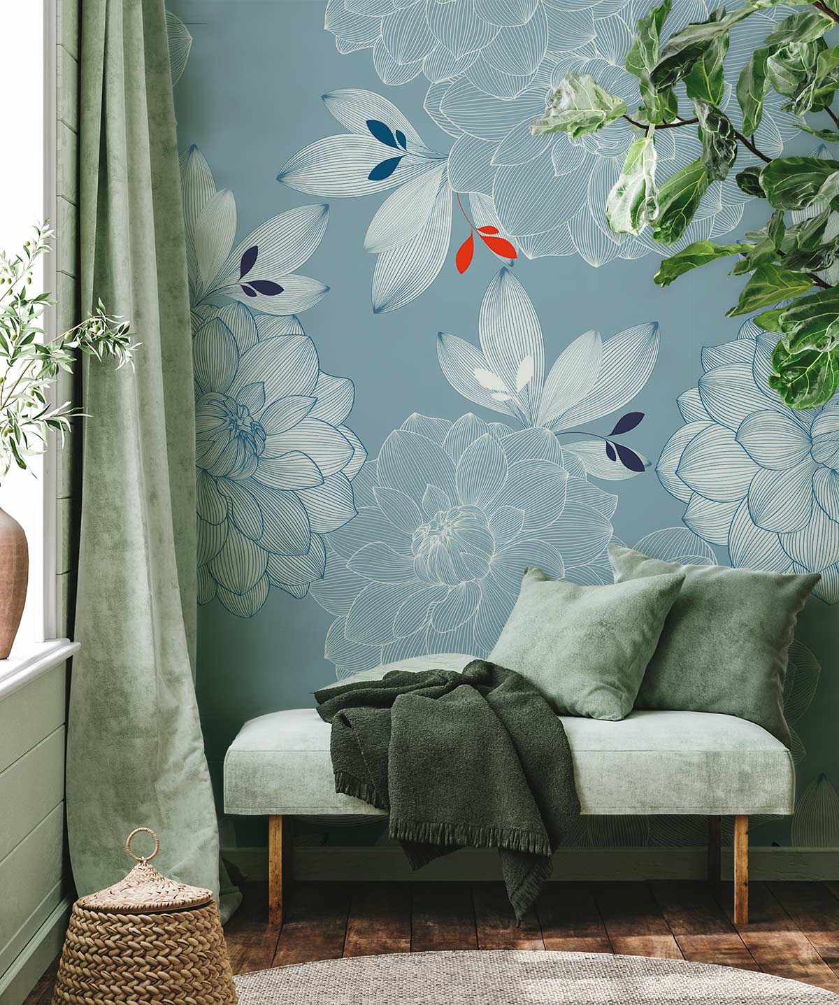 Transformez les murs de votre maison avec ce magnifique papier peint mural Paeonia bleu. Ce joli papier peint mural de fleurs avec des fleurs Paeonia bleues associées à un accent de feuilles orange et violet créera un effet élégant et glamour sur vos murs. Il est parfait pour un salon ou une chambre à coucher, mais peut également être utilisé dans tout type d'espace, comme un bureau ou un restaurant, en raison du motif polyvalent de fleurs épanouies qui est une prise classique sur la disposition traditionnelle du Paeonia.