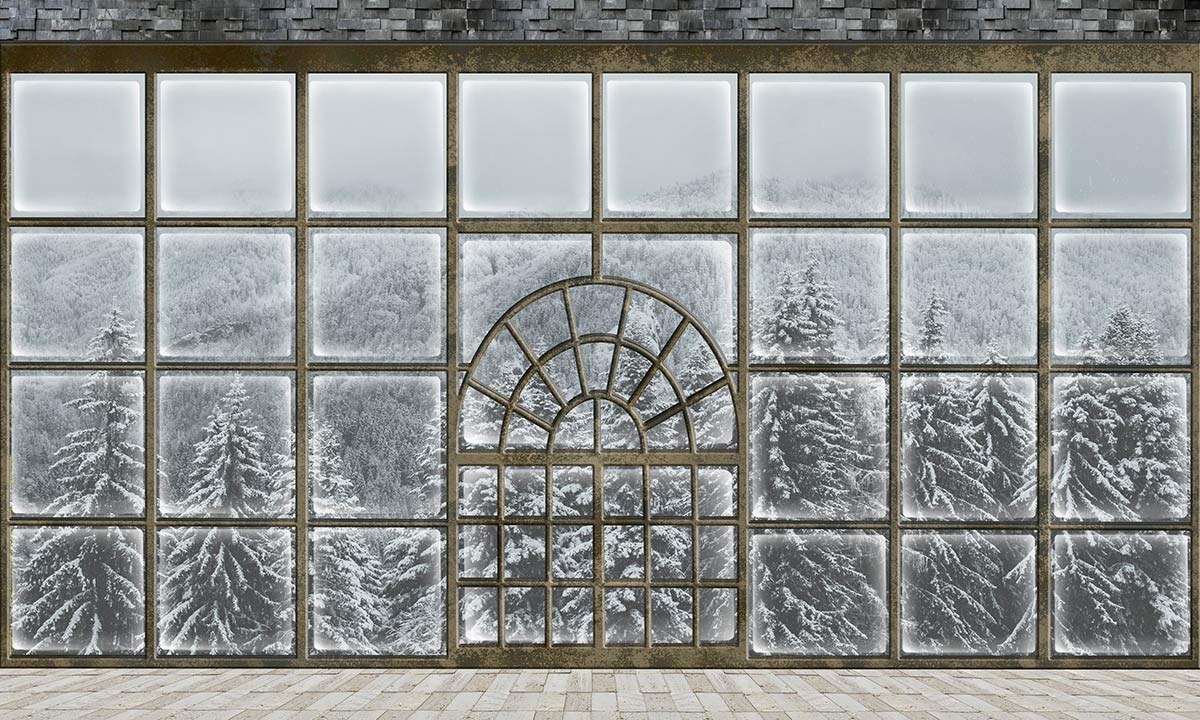 Regardez par la fenêtre et profitez des beaux paysages avec ce paysage d'hiver de vue de la forêt de pin neige à travers du papier peint mural. Ajoutez une touche paisible et élargissez votre espace de chambre avec une forêt de pin enneigée. Fond d'écran de nature parfaite pour votre chambre et votre salon.