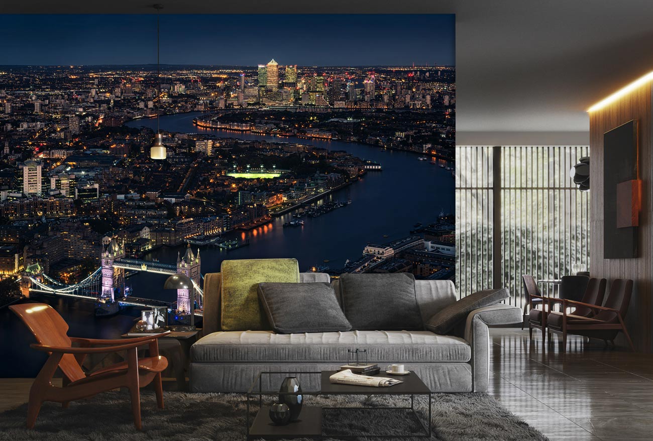 Apportez l'atmosphère unique de la vie nocturne de Londres dans votre maison avec ce papier peint panoramique exclusif Over London. Avec une vue magnifique de la ligne d'horizon de Londres la nuit, les bâtiments et les points de repère de cette peinture murale, dont beaucoup sont des destinations touristiques célèbres, montrent clairement que nous sommes à Londres. Ce papier peint mural a un impact spectaculaire dans n'importe quelle pièce, transformant un espace "ordinaire" en un point focal. La disposition unique s'adapte aussi bien à un environnement moderne qu'à un environnement traditionnel, et le point de vue panoramique complet ne manquera pas d'attirer votre regard de l'autre côté de la pièce.