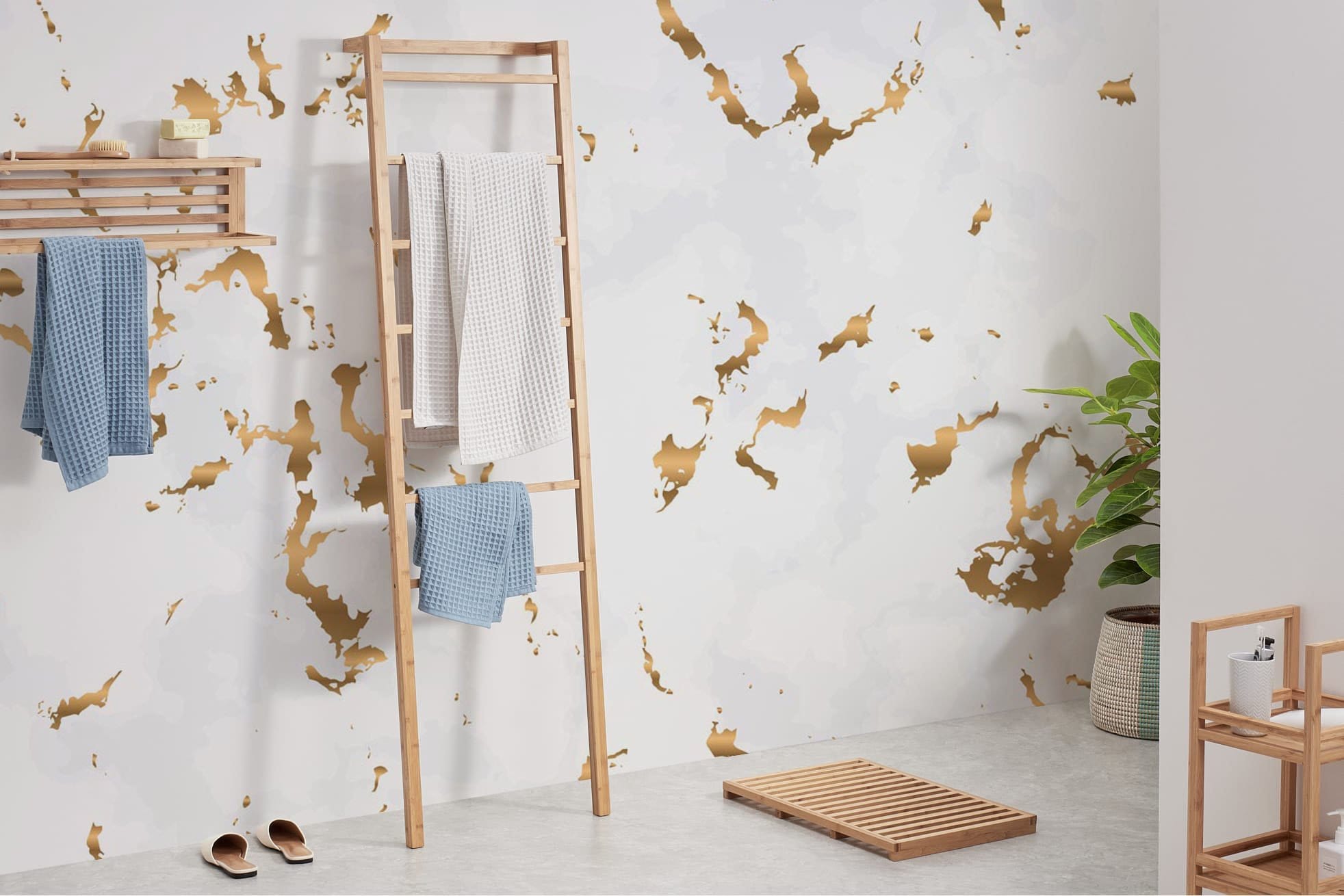 Accueillez une finition élégante dans votre intérieur avec ce papier peint mural en marbre, un design à effet de mur frais qui impressionnera. Doté de griffonnages dorés avec des carreaux de marbre blancs élégants mis à l'échelle à partir du bas, ce design unique ajoutera à coup sûr un élément accrocheur à votre thème. La texture fraîche du marbre blanc offre un style contemporain parfait pour les cuisines modernes, les salles de bains et plus encore.
