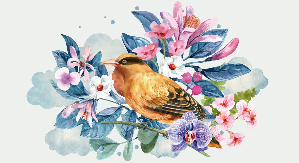 Appréciez la beauté naturaliste de notre papier peint mural Oiseau en fleur. Cette peinture murale représente un oiseau brun perché au milieu de fleurs violettes et blanches, créant un look discret mais charmant pour vos murs. Ce motif est idéal pour égayer votre salon, votre chambre à coucher ou tout autre espace de votre maison, tout en affichant un aspect vintage intéressant, peint à la main, qui convient parfaitement aux intérieurs à thème floral et aux meubles en verre délicats.