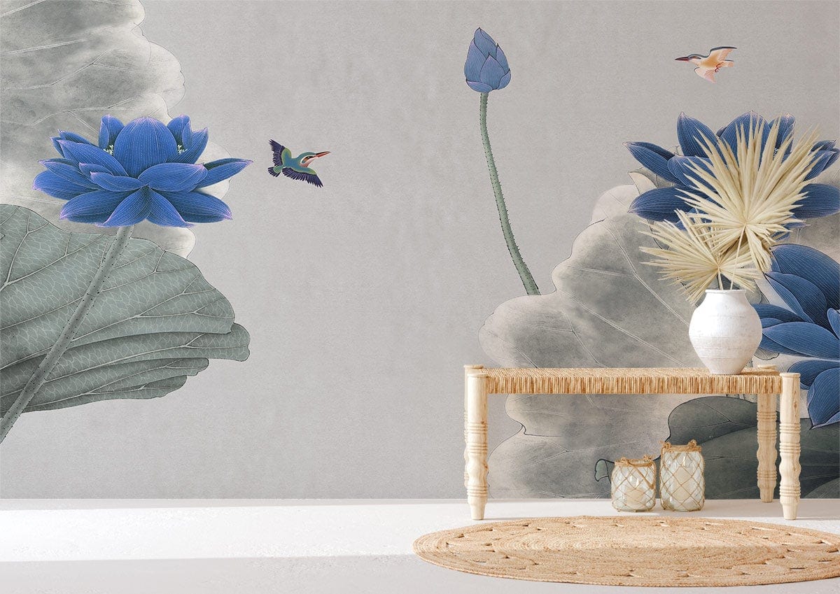 Papier Peint Fleur de Lotus Bleu