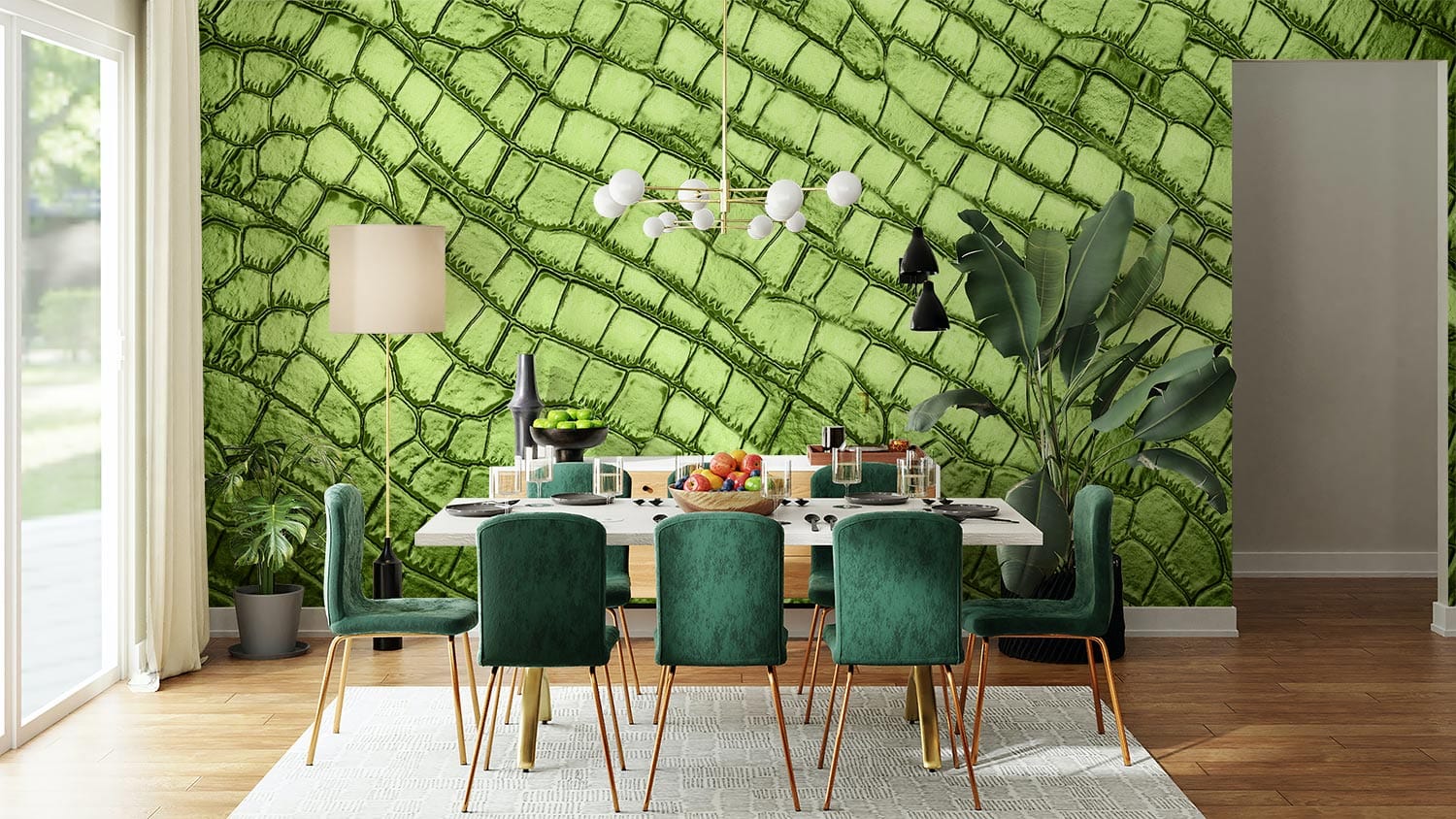 Vous serez absolument étonné de ce superbe papier peint en faux crocodile! Installez cette murale de papier peint de crocodile vert et vert accrocheur comme mur pour obtenir un look magnifique et élégant! Il aura l'air encore mieux si vous le jumerez avec des meubles blancs et pastel et des décors de maison.