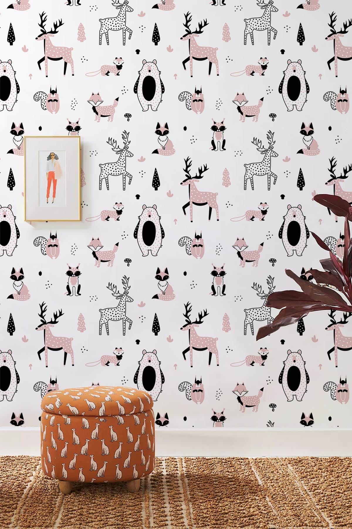 Décorez la chambre de votre enfant avec notre papier peint mural mignon de petits animaux. Ce motif répété comprend un joli renard, un ours et un cerf sous un fond blanc qui ne manquera pas de faire fondre le cœur de vos enfants. Parfait pour une chambre de bébé ou la chambre de votre enfant et fonctionne mieux avec tous les styles de meubles.