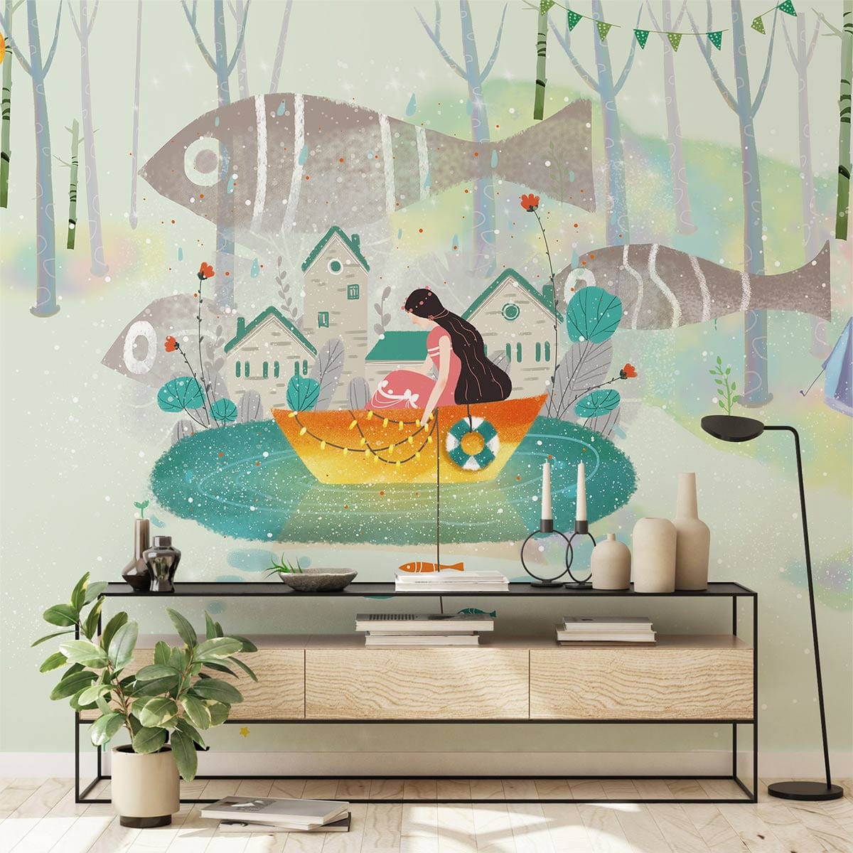 Contemplez ce fond d'écran mural exceptionnel qui montre des images imaginaires. Le thème du fond d'écran est différent, comme si vous l'aviez utilisé pour votre Kids , cela élargira leur imagination. Ayant Fish Volant dans le La forêt est une image anormale à montrer mais représente la liberté. Certains enfants aiment les images inhabituelles car cela les aide à avoir leur propre monde; Par conséquent, celui-ci les soutiendra à penser de la boîte. L'utilisation de la décoration avec le même thème, y compris le poisson et la forêt, améliorera leur façon de penser. Dépêche-toi! Aidez vos enfants à créer des souvenirs dans leurs chambres.