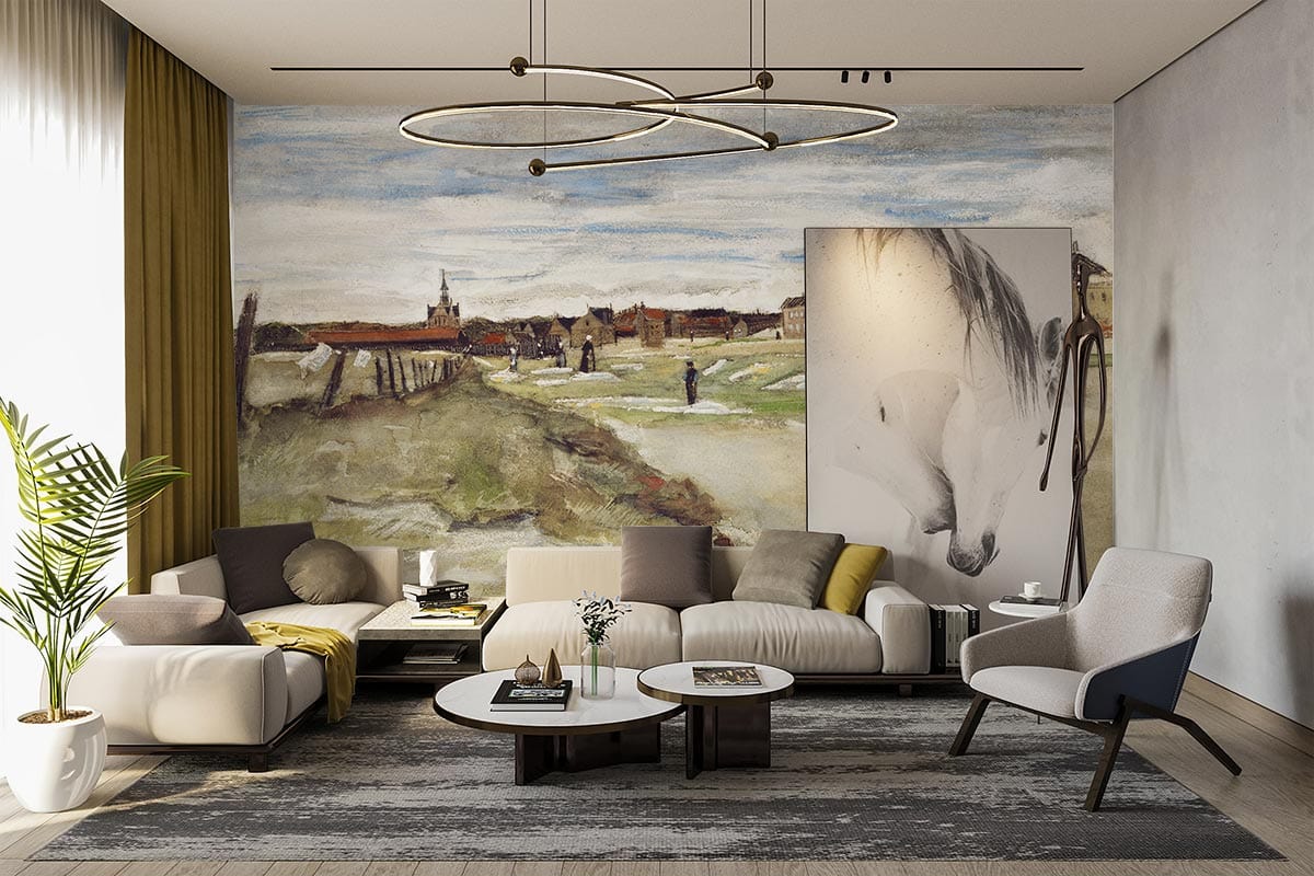 Donnez de la vie à vos murs avec ce Papier peint panoramique Bleaching Ground inspiré d'une véritable œuvre d'art. Un design audacieux et unique mettant en valeur un paysage de champ paisible dessiné dans un motif au crayon coloré. Avec ce portrait basé sur une journée décontractée en Europe, animée par un ciel bleu, de l'herbe verte et des maisons anciennes, ce papier peint mural apportera certainement du caractère, du charme et de l'intérêt à n'importe quelle pièce de votre maison. Rehaussé par un effet de texture subtil, ce papier peint mural fera ressortir n'importe quelle pièce.