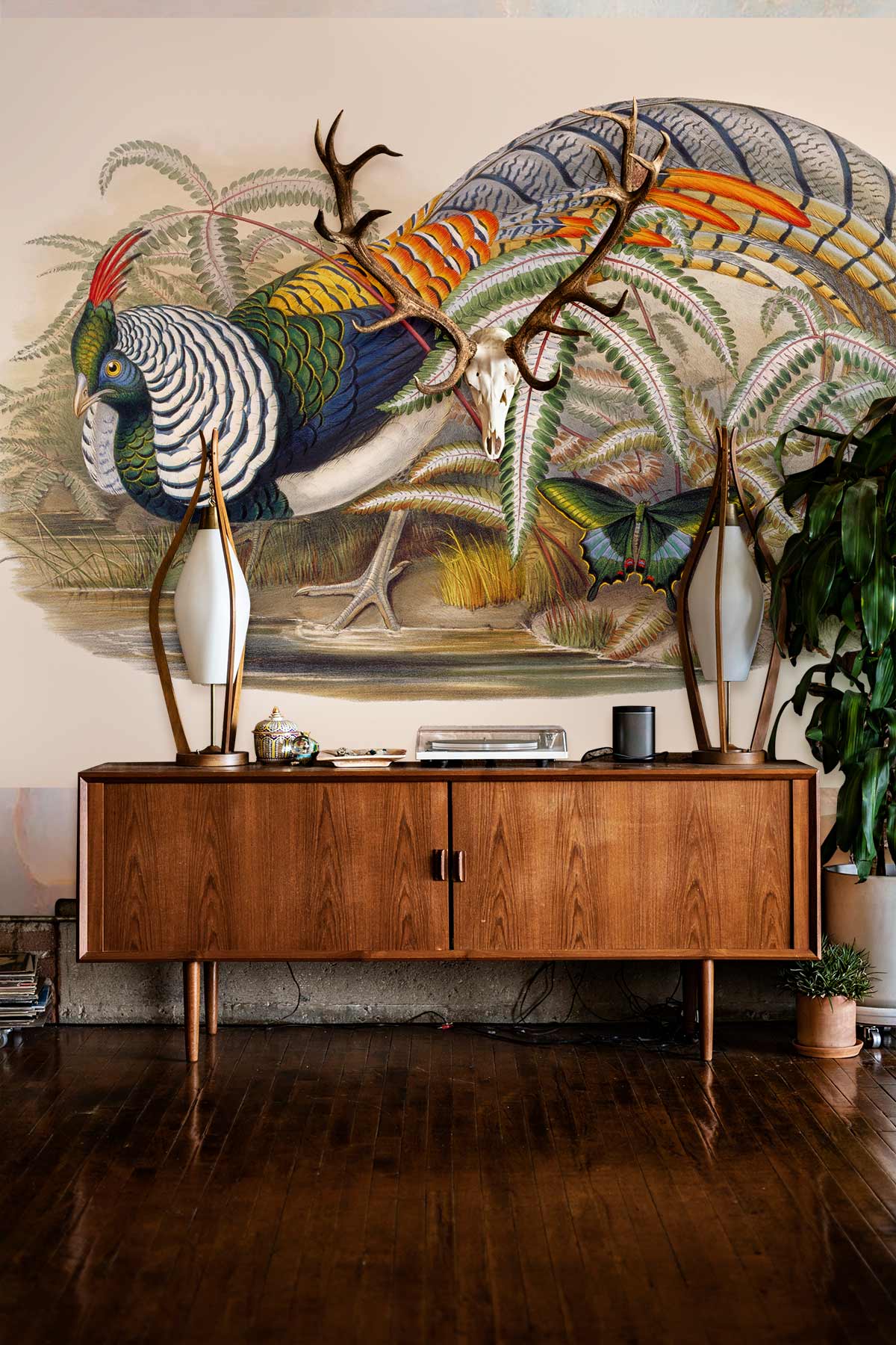 Unissez votre espace de vie à la nature tout en créant un point focal attrayant dans votre maison avec notre papier peint mural Thaumalea Amherstiae. Conçu comme un ajout distinctif à n'importe quelle pièce, ce magnifique papier peint mural représente le tristement célèbre oiseau Thaumalea Amherstia avec ses plumes colorées reposant entre des fougères dans des tons verts luxuriants. Avec son design audacieux et contemporain et son motif saisissant, Thaumalea Amherstiae est le moyen idéal d'ajouter de l'élégance et un style moderne à votre espace tout en étendant la beauté de votre espace de vie.