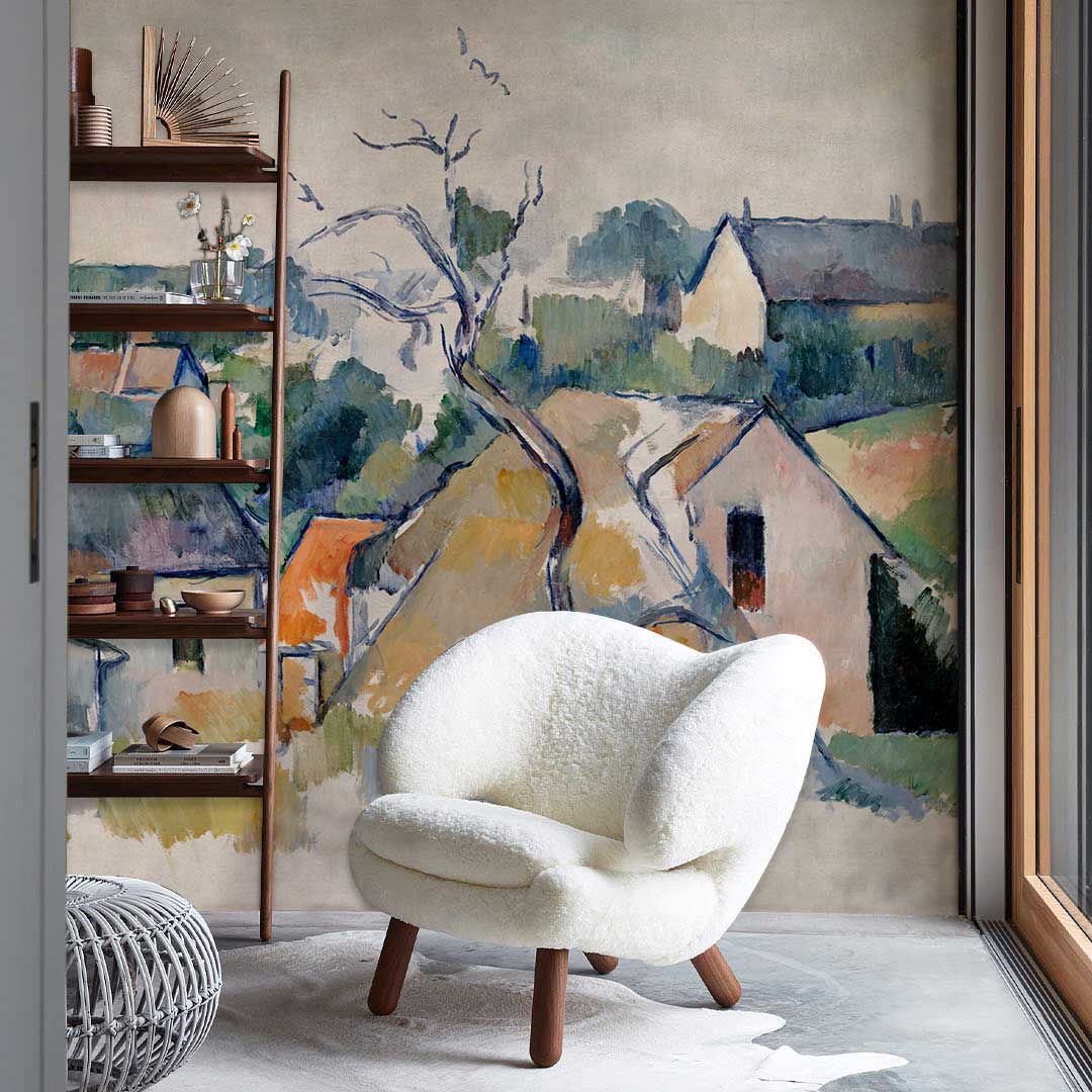 Nous avons trouvé la meilleure solution pour apporter un style frais et créatif à vos murs ! Créez un chef-d'œuvre de décoration intérieure sur vos murs avec notre papier peint mural Rooftops Townscape ! Le design inspiré des années 1920 représente une vue de la ligne d'horizon avec des toits de ville colorés au loin et une branche d'arbre vide devant. La palette de couleurs blanche et grise en éclaboussures d'aquarelle crée un environnement frais et apaisant parfait pour tout mur de chambre ou de bureau.