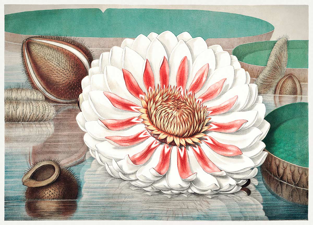 Contemplez cette belle fleur, ce n'est pas seulement une fleur, c'est une aide et une icône de beauté. Cette petite fleur blanche pousse dans les eaux de l'Amazonie et s'appelle Victoria en l'honneur de la reine Elizabeth d'Angleterre. Cette petite plante pousse l'eau autour d'elle pour arroser les plantes qui l'entourent et les rendre fraîches et vivantes. Ce papier peint est parfait pour la saison du printemps, avec ses vibrations fraîches qui rempliront votre intérieur et le rendront frais et plein de vie. Associez-le à un mobilier moderne et gardez l'effet de luminosité partout dans la pièce.