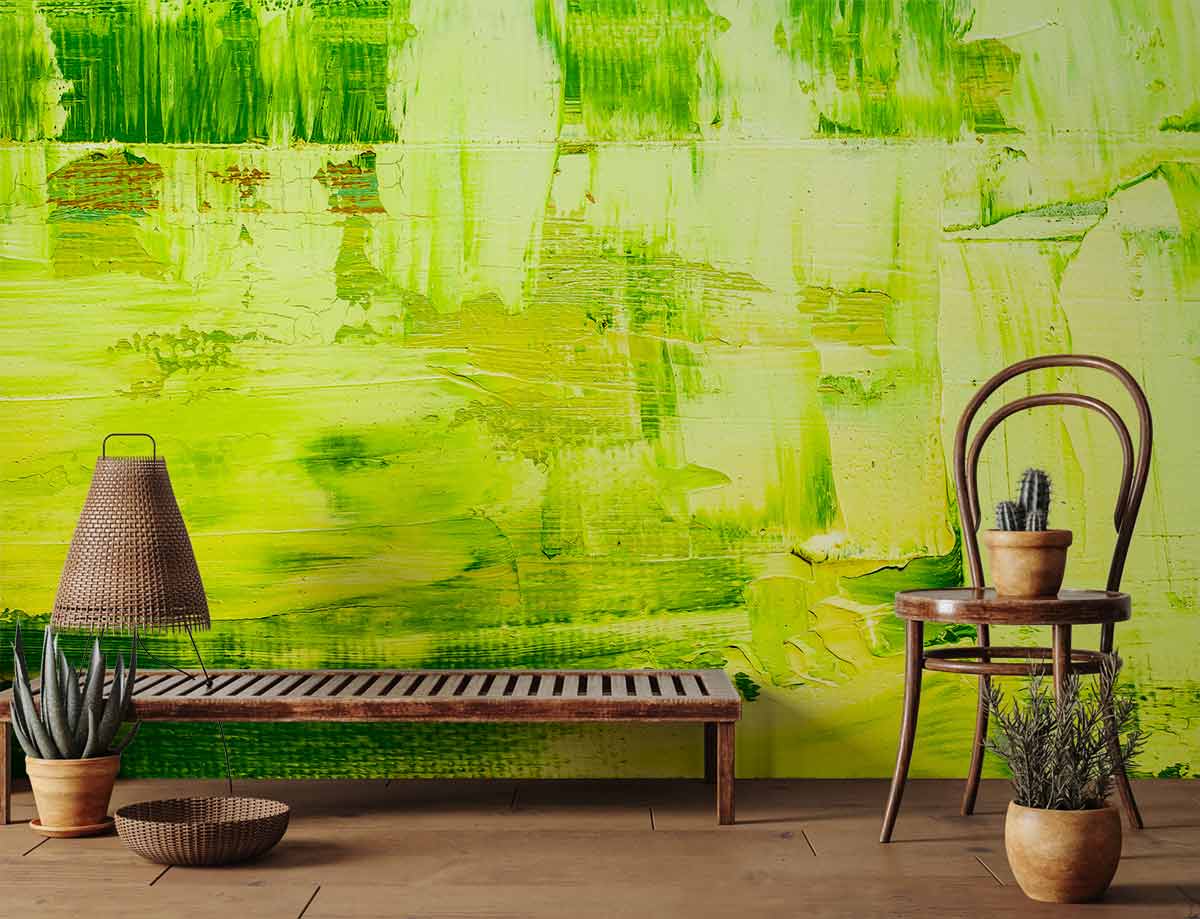 Placez ce charmant motif de papier peint dans une chambre à coucher, une crèche, une chambre d'enfant, un salon, un couloir, un bureau à domicile, une cuisine ou dans tout espace de votre maison qui a besoin d'une touche de décor édifiant. Un design lumineux avec des nuances de vert clair et de citron pastel. Ce design lumineux Vitality donnera à votre maison une vibration de rafraîchissement et vous fera sentir l'endroit plus large. Ce tableau de vitalité aux nuances de couleurs huileuses verdâtres est idéal avec les décorations légères, alors utilisez des meubles modernes légers avec lui. Un lit blanc et des rideaux en mousseline pour un mariage parfait et un tapis vert foncé pour compléter le contraste.