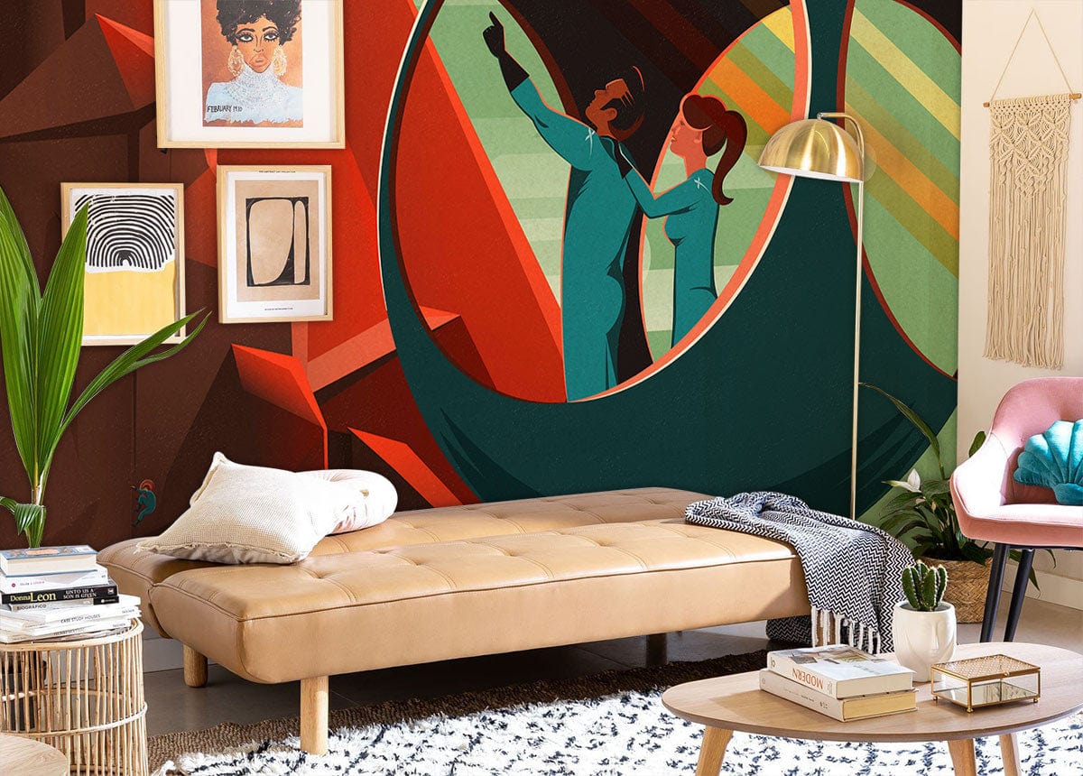 Les inventions et la technologie sont dans notre vie quotidienne sans aucun doute. Ce papier peint mural avec module abstrait de peinture est l'une des pièces que vous devez mettre dans votre liste si vous recherchez un design cool et moderne. Ce papier peint mural est parfait pour la décoration de votre librairie, votre salon, votre bureau ou votre espace de travail. Le papier peint montre un couple d'un homme et d'une femme qui discutent de quelque chose et soulignent quelque chose de vraiment important. La technologie et la réalité de la peinture murale ajouteront un effet très détaillé à votre espace. Associez-le à des rideaux blancs unis en mousseline de soie et à un mobilier moderne en bois pour un résultat parfait.