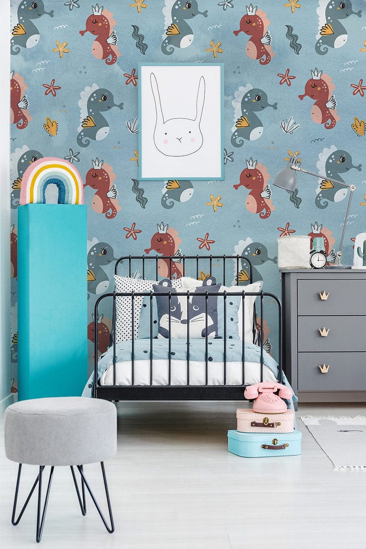 Apportez le charme et le caractère des hippocampes à la chambre de votre petit avec ce papier peint mural Seahorse Babies. Un fantastique papier peint pour enfants, cette peinture murale représente des bébés hippocampes nageant aux côtés d'étoiles de mer colorées. Ce papier peint apaisant transformera leur espace en un monde marin, apportant certains des personnages les plus attachants de l'océan directement dans leur chambre. Les superbes couleurs rose et bleu créent une atmosphère apaisante que les bébés pourront également apprécier.