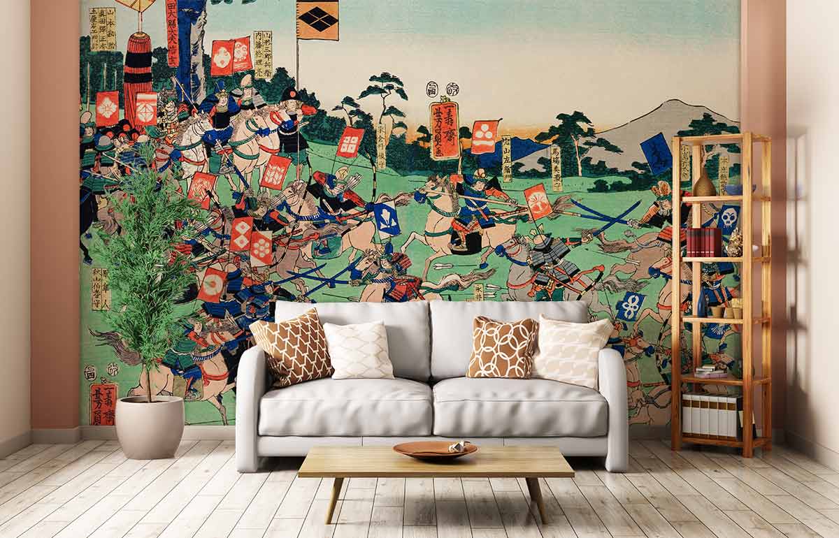 Les batailles de Kawanakajima étaient une série de batailles durant la période sengoku au Japon entre différentes parties de 1553 à 1564. Ces batailles de Kawanakajima sont devenues l'un des récits les plus chers de l'histoire militaire japonaise.Ainsi, en mettant ce magnifique morceau d'histoire dans votre lieu, vous le rendrez complètement chic, victorieux et attrayant. Ce papier peint mural multicolore fera entrer votre maison dans un nouveau niveau de modernité mélangé à un thème héroïque.