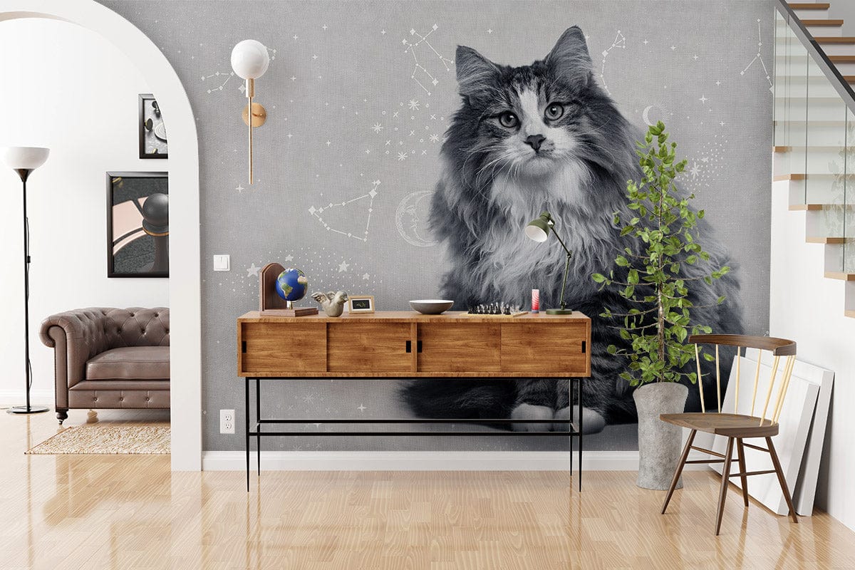 Votre chat de compagnie sera le centre d'attention avec cette grande peinture murale. Notre papier peint mural Maine Coon représente un gentil chat à poils moyens qui vous regarde sérieusement lorsque vous choisissez de le coller sur votre mur. Le design moderne et coloré est un excellent choix pour les amoureux des chats de toutes sortes et constitue un point focal accrocheur, parfait pour une chambre d'enfant ou une salle de jeux. Ce papier peint chat apportera une touche de luxe et de tendance à votre espace de vie.
