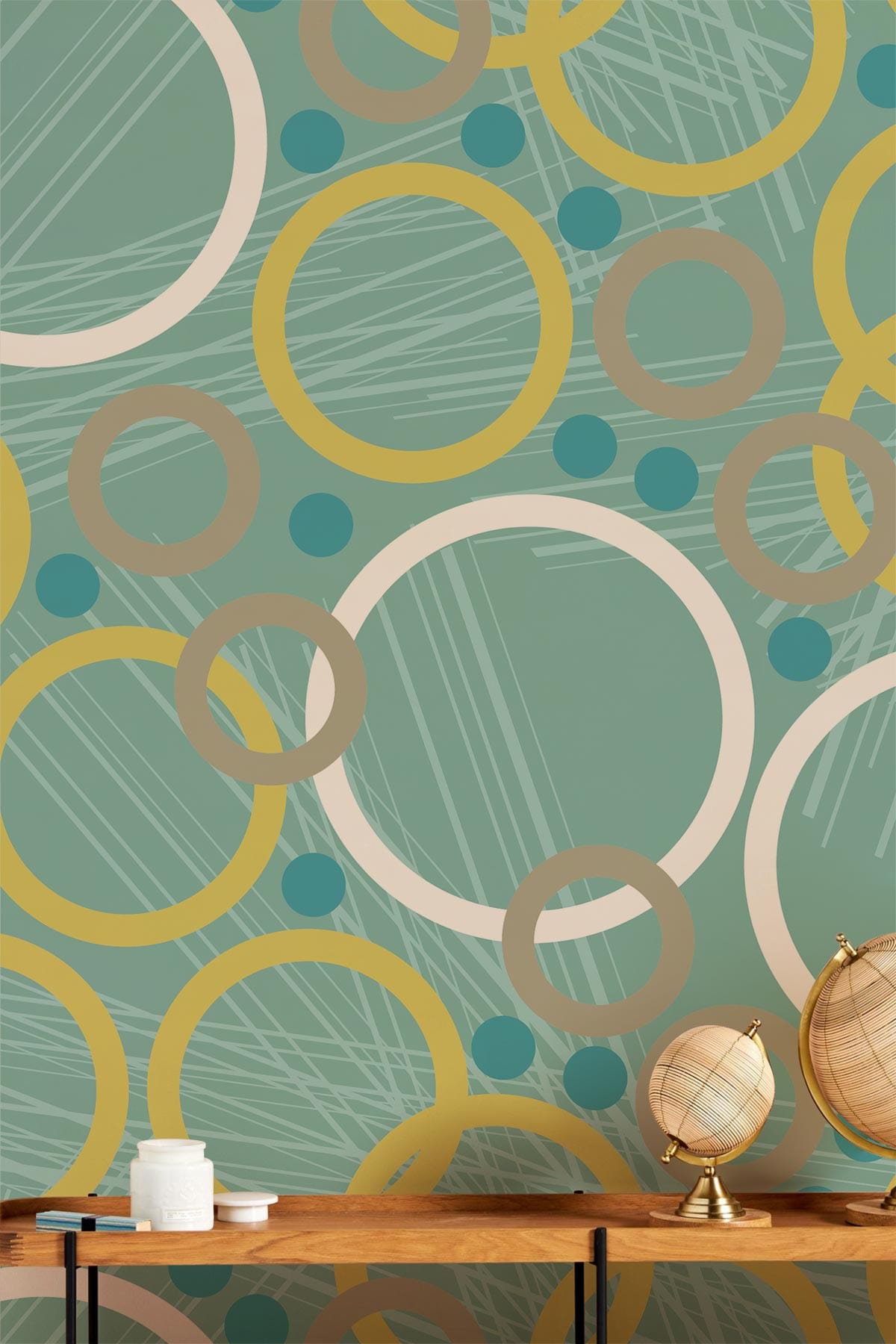 Profitez des nuances de modernité et de couleurs à la mode dans ce Ever Wallpaper mural cercle avec la menthe vert ombre à l'arrière-plan. Ce pastel Shade est à la mode cette année. Modèle mural et des cercles jaunes colorés très vibrants et colorés pour donner une échelle élargie à votre place. Il fonctionne parfaitement dans des zones étroites. Utilisez-le dans votre Living Salle Pour un nouvel effet de rénovation et très moderne. Ce design est parfait avec des décorations modernes et semi-modernes. Utilisez des rideaux en mousseline et des canapés en velours pour le meilleur look de salon!