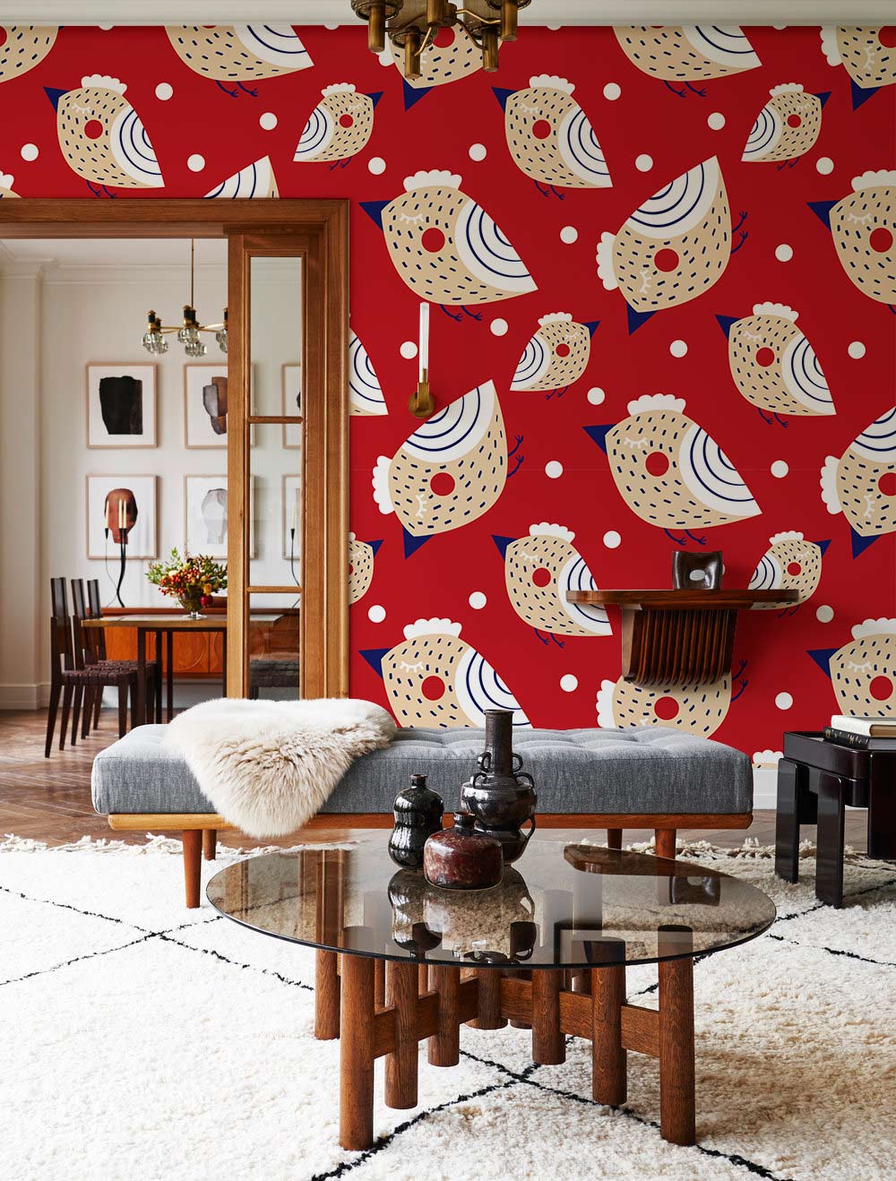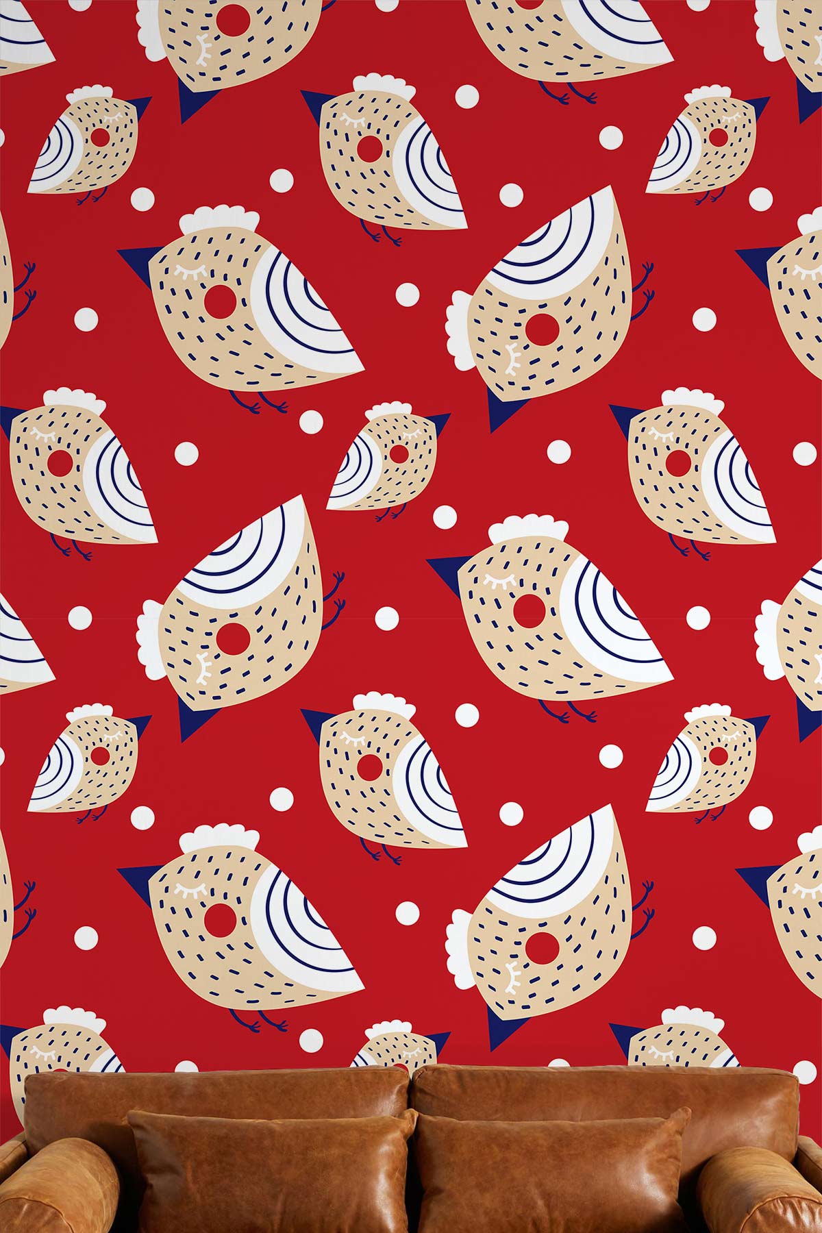 Accueillez une ambiance mignonne et vibrante dans votre espace, vous pouvez choisir ce papier peint panoramique, les oiseaux des fraises. Sur le magnifique fond rouge, on peut voir de nombreux oiseaux ressemblant à des fraises, fermant les yeux, volant librement... Ce papier peint panoramique est plein d'imagination. Vous pouvez installer ce papier peint mural dans votre salon, votre salle à manger et votre cuisine. Vos invités seront émerveillés par sa beauté fascinante.