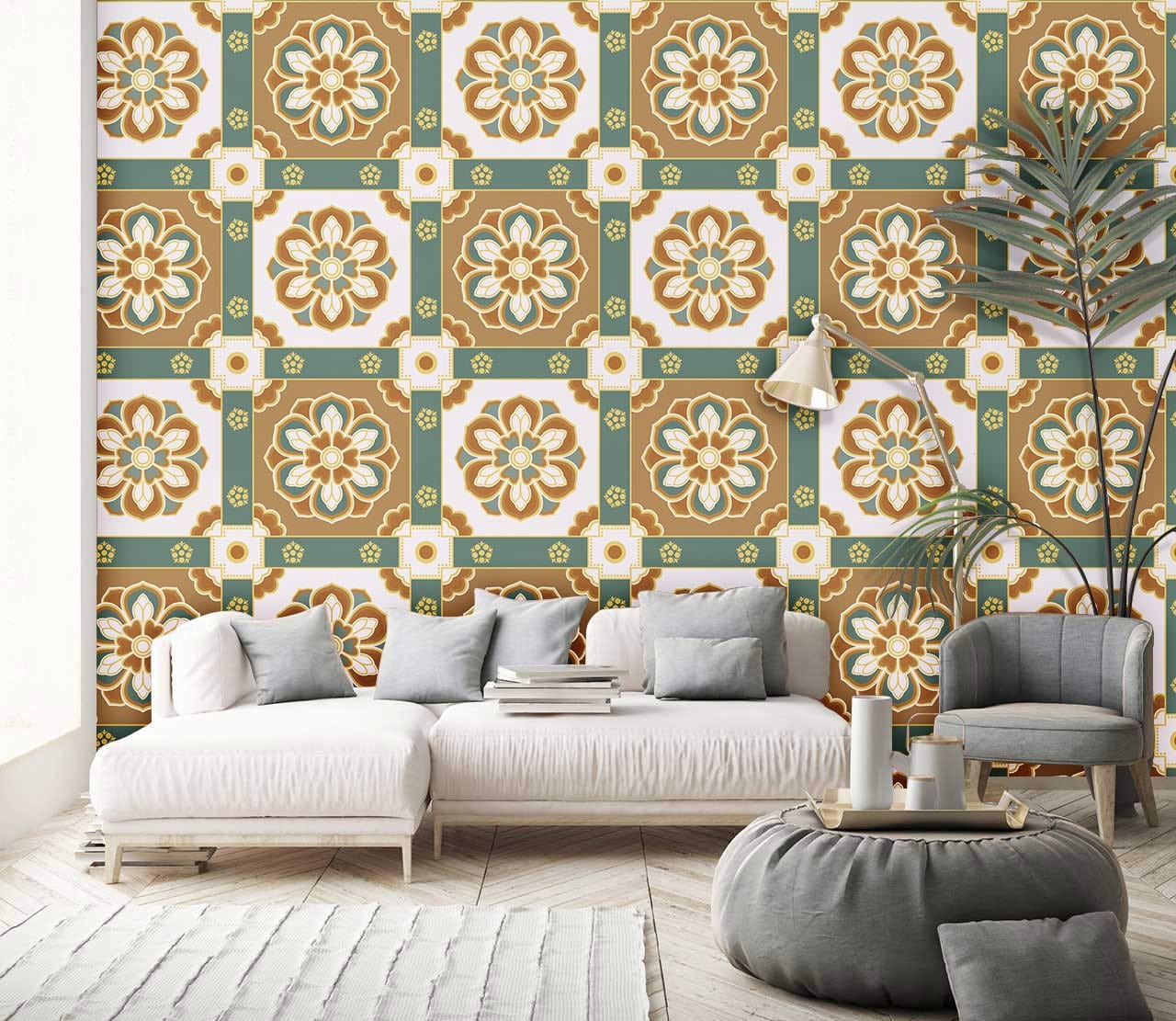 Voici le papier peint mural style palais, un papier peint mural avec un motif orné de style palais. Ce papier peint mural recrée la décoration somptueuse d'un palais dans des couleurs éblouissantes, créant une toile de fond étonnante pour n'importe quelle pièce de votre maison. Le motif richement décoré comprend des couleurs vives, des fleurs symboliques et des formes organiques assemblées pour former une peinture murale traditionnelle de style artisanal. Parfait pour ceux qui veulent que leur pièce se distingue des autres, ce papier peint vous donnera l'impression d'appartenir à la royauté. Vous pouvez faire partie du palais ou le faire venir à vous !