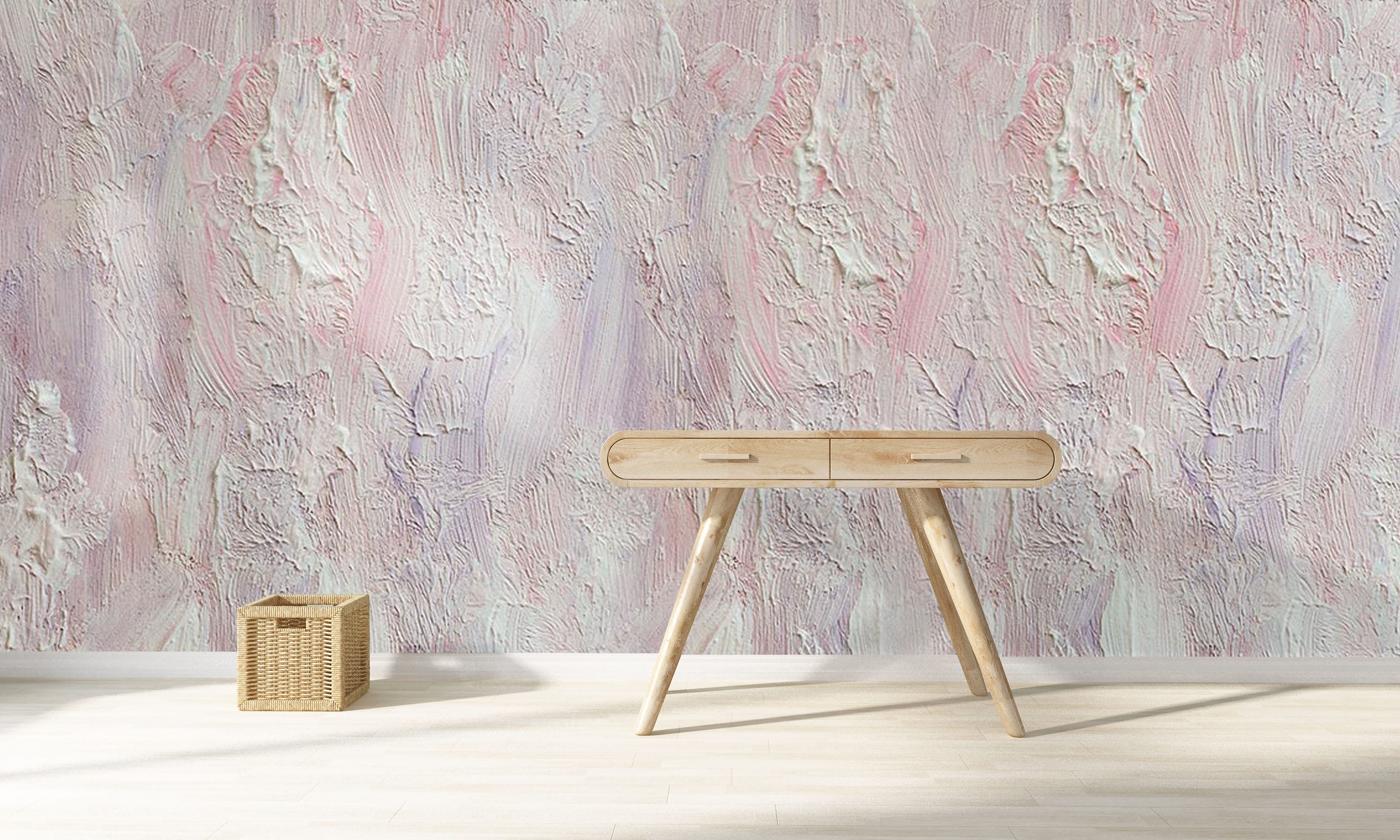 Créez un espace unique dans votre maison avec notre papier peint texture peinture à l'huile crémeuse. Cette peinture à l'huile en rose pastel doux, violet & les couleurs blanches lui donneront sûrement une touche douce et charmante à votre espace intérieur. Cette décoration murale s'accordera également parfaitement avec vos meubles et décorations d'intérieur modernes.