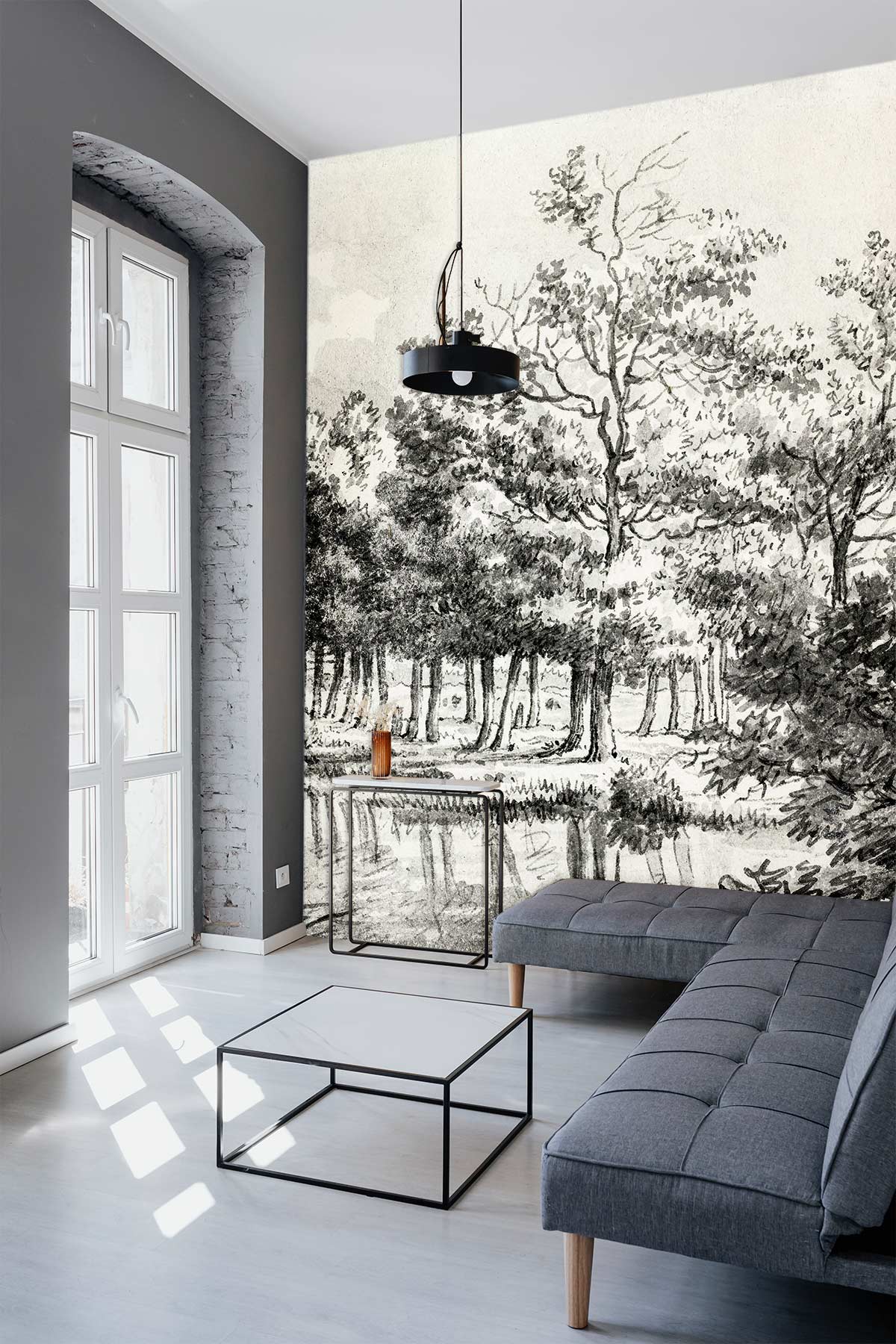 Apportez une touche pastorale à votre intérieur avec ce Papier peint panoramique Paysage avec vaches. Présentant un charmant paysage dessiné à la main avec des vaches broutant joyeusement dans une forêt, cette peinture murale décorative confère un aspect champêtre classique à toute pièce. Le design rappelle les croquis d'antan, avec une palette de couleurs sourdes qui apporte une touche saisonnière. Ce magnifique décalque crée l'apparence d'une peinture originale dans un design de croquis de forêt et apporte un peu de paix et de tranquillité à vos murs.