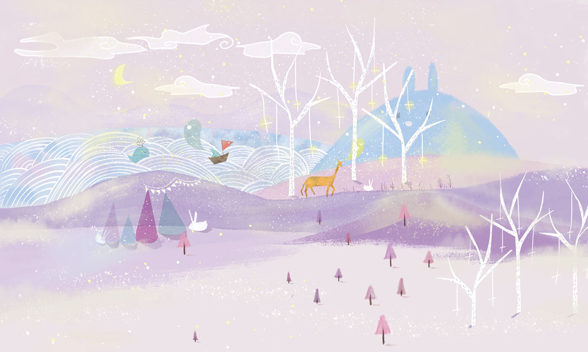Profitez d'un merveilleux début d'année et d'une ambiance hivernale différente avec ce papier peint mural pastel lilas. Un pays fantastique avec des arbres et des objets colorés partout pour donner une vue de rêve à ce design. Ce design est si simple et léger pour la chambre de vos enfants, et il est aussi si parfait pour une chambre d'enfant. Les étoiles jouant dans le ciel et le cerf doré errant dans le pays de rêve rendent la chambre si chic et si accrocheuse pour votre enfant et la détente des yeux. Assurez-vous d'utiliser des décorations lumineuses et claires pour donner un aspect fluide à votre maison.