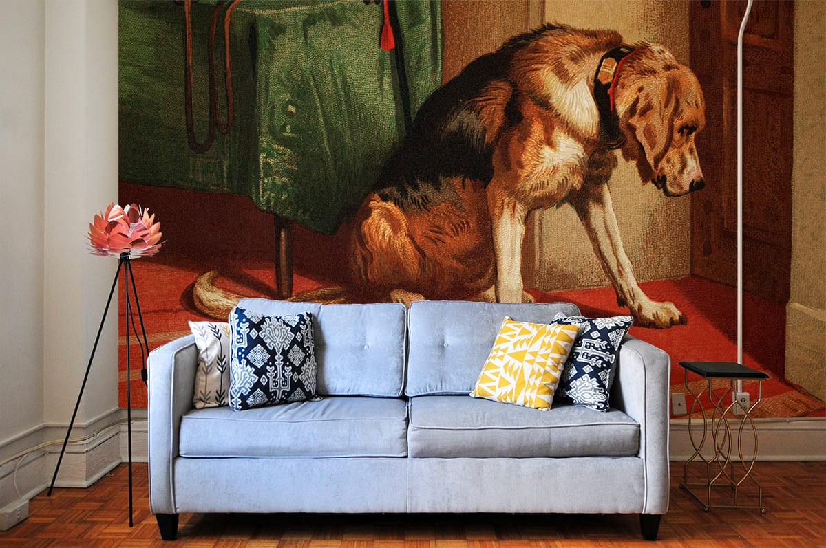 Vous voulez un papier peint qui ressemble à une peinture sur vos murs ? Alors votre recherche est terminée ! Le Papier peint panoramique Suspence présente l'image d'un golden retriever réalisée à coups de pinceau et de toile. Les couleurs sont dans des tons profonds et sombres de brun, vert et rouge pour créer une ambiance chaleureuse, confortable et détendue dans votre espace. Il s'agit d'une peinture murale magnifique et mémorable qui fera passer votre pièce d'ennuyeuse à étonnante. Elle est faite de matériaux durables, vous n'aurez donc pas à vous inquiéter qu'elle se décolore ou s'écaille sur vos murs.