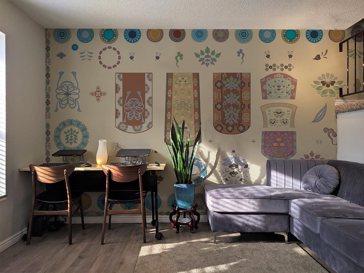 Personnalisez vos murs avec notre papier peint mural Auspicious Life qui présente une collection d'éléments de design prometteurs pour apporter la bonne fortune à votre espace. Notre papier peint mural Auspicious Life a été conçu pour inspirer un sentiment de calme et de tranquillité. Les motifs fluides créent un arrière-plan magnifique pour n'importe quelle pièce. Ce motif convient aux espaces de vie et aux murs des chambres, mais peut également être utilisé dans des locaux commerciaux tels que les hôtels, les restaurants et les bureaux où les clients sont accueillis. Laissez-vous inspirer par ce papier peint de bon augure, qui reprend un ancien charme chinois pour le bonheur, en nourrissant votre âme et votre corps de l'énergie du succès et de la fortune.