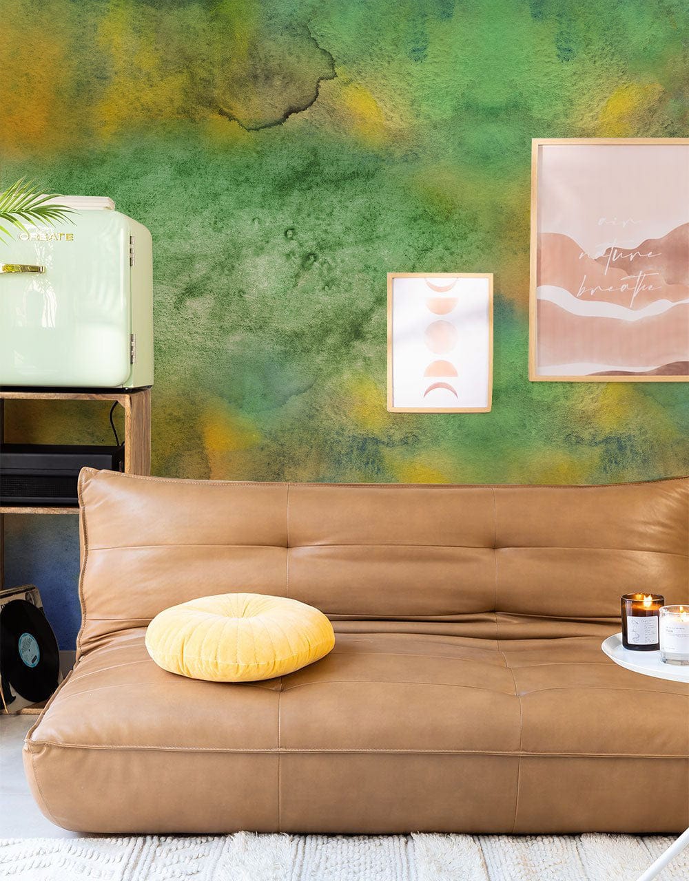 Rehaussez l'apparence de votre pièce avec ce magnifique papier peint panoramique Green Lake. Le motif graphique de ce papier peint mural présente de saisissantes nuances de vert et d'orange avec des éclats de bleu, de rose, de jaune et de noir assemblés par une technique d'aquarelle abstraite. Le paysage aquarelle coloré de ce papier peint amusant est parfait pour votre maison et ajoutera un peu de fantaisie à la pièce de votre choix. Idéale pour votre bureau et tout environnement de travail, cette peinture murale vous stimulera à faire vos choses à temps.