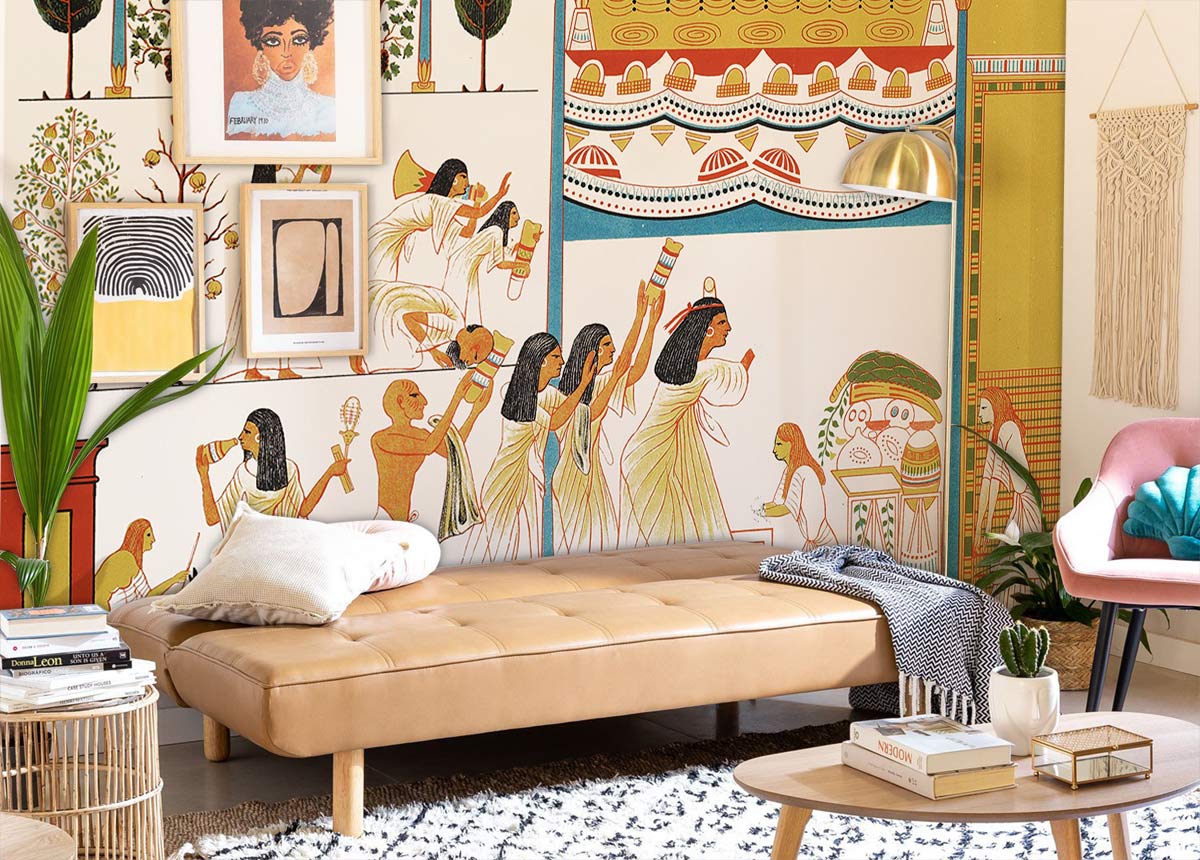 Accueillez une ambiance culturellement mystérieuse dans votre espace, vous pouvez choisir ce papier peint mural, Pèlerinage égyptien. Les couleurs vives et la merveilleuse peinture murale peuvent vous amener dans le monde des Égyptiens pour voir leur pèlerinage. Vous pouvez installer ce papier peint mural dans votre salon, votre salle à manger et votre couloir. Et vos invités seront étonnamment surpris par le mystère que ce design apporte.