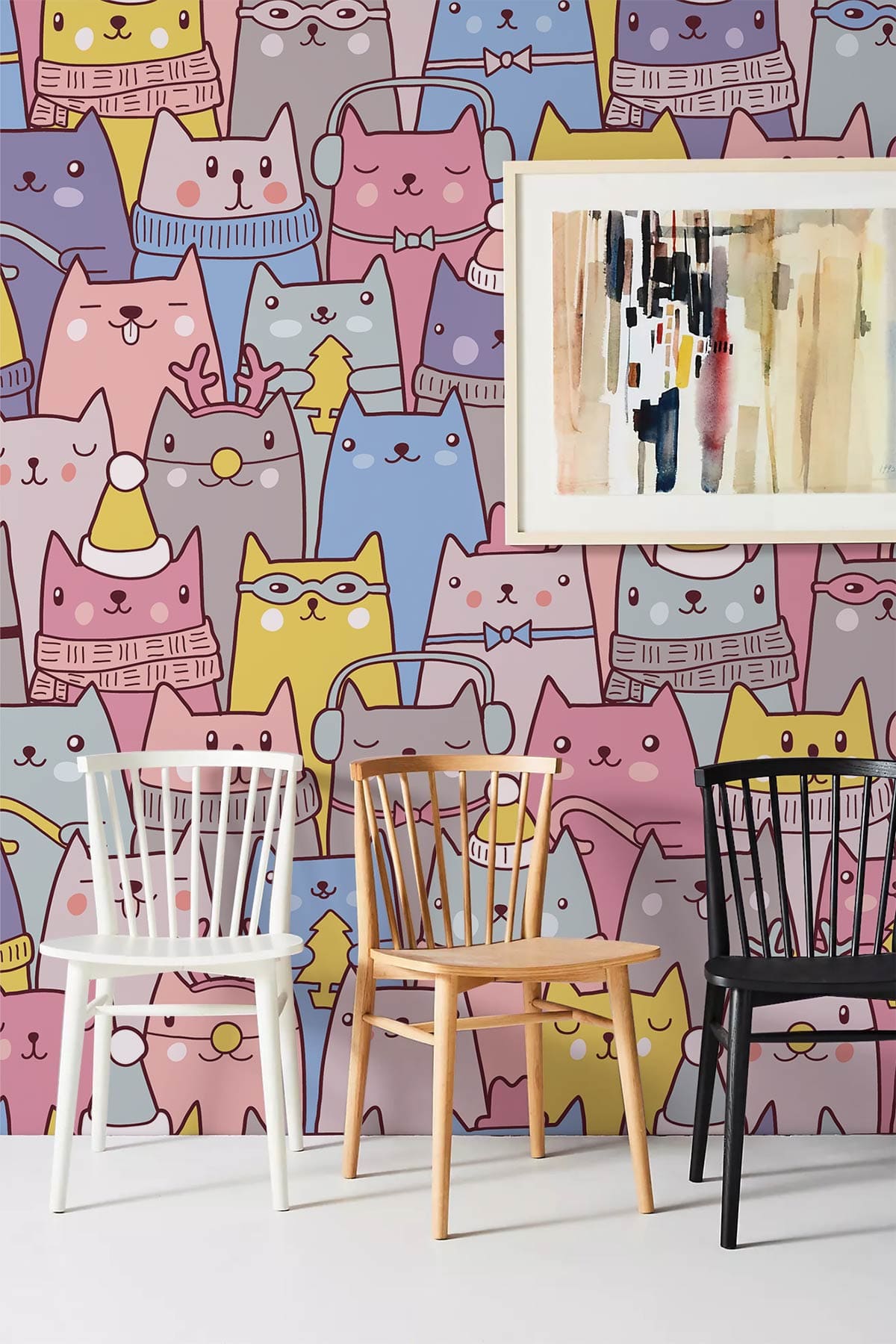 C'est Noël, et nous décorons tous nos maisons avec de belles décorations de Noël chaleureuses. Apportez la joie à votre chambre Kidsā €? Par ce papier peint mural de couleur mignonne. Les nuances de bleu bébé et le rose poudre en feront un match parfait pour un garçon ou une fille. Ces charmants chats ressemblent à un public à pleine charge? Votre enfant aura les compétences pour connaître les couleurs des chats et apprendre les objets qu'ils portent, et même les traiter comme un public. Ajoutez un bel esprit en ayant notre Ever Wallpaper de chats de Noël qui convient à une crèche, à un quartier Kidā € ou à une salle de jeu pour vos enfants. Faites-en un Noël spécial et surprenez vos enfants en décorant leur chambre. Notre collection est disponible en trois options différentes, vous pouvez donc changer leur chambre en utilisant l'option Peel and Stick pour plus de plaisir de Noël & amp; ne manque pas de prendre des photos avec le mur derrière.