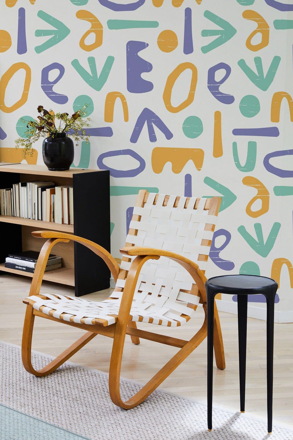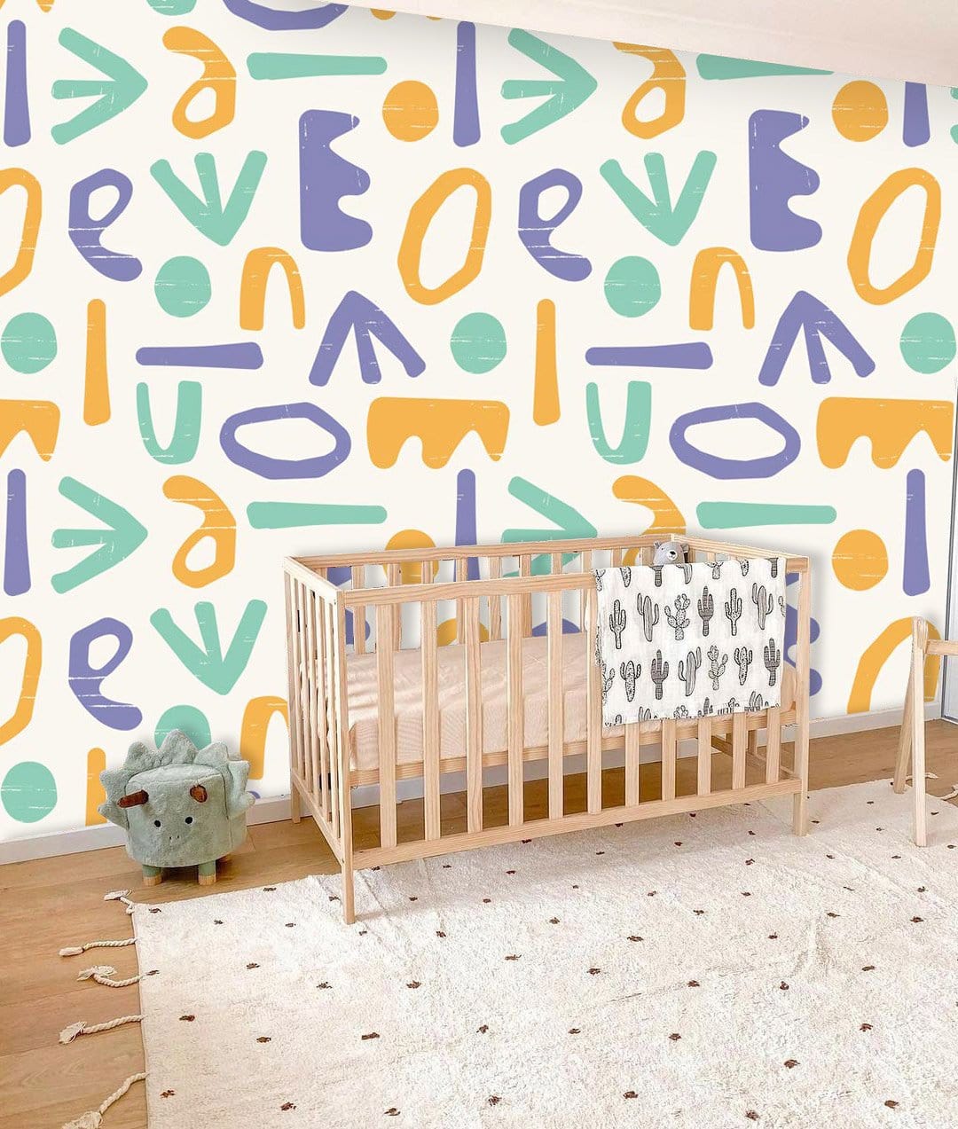 Si vous recherchez une peinture murale élégante et petite lettre qui peut s'adapter à votre espace intérieur et à vos décorations d'art, alors cette murale de papier peint de motif de lettre répétée est votre choix parfait. Ce mur complet de lettres conçus avec trois couleurs: vert, violet et? Jaune, qui créera sûrement une atmosphère confortable et paisible pour votre espace.