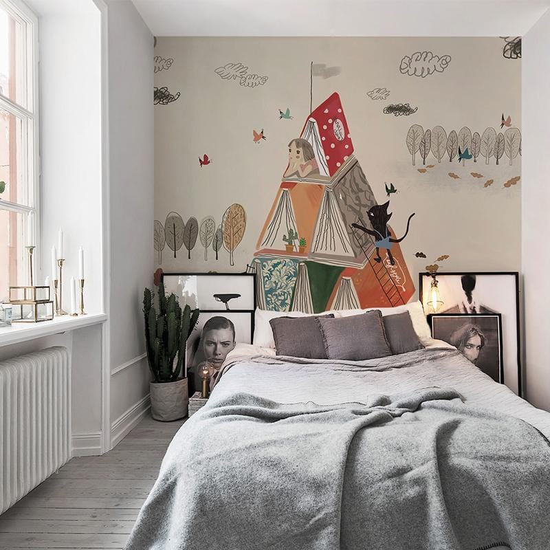 Ouvrez l'imagination de vos enfants avec ce charmant papier peint mural. Regardez les éléments des contes de fées dans ce sticker mural mignon avec une petite fille qui se détend dans un principe fait de livres. Situé dans de subtiles nuances pastel de beige, il est agréable à regarder et parfaitement adapté à la chambre de bébé de votre enfant. Associez-le à n'importe quelle couleur vive ou des meubles pastel seront parfaits.