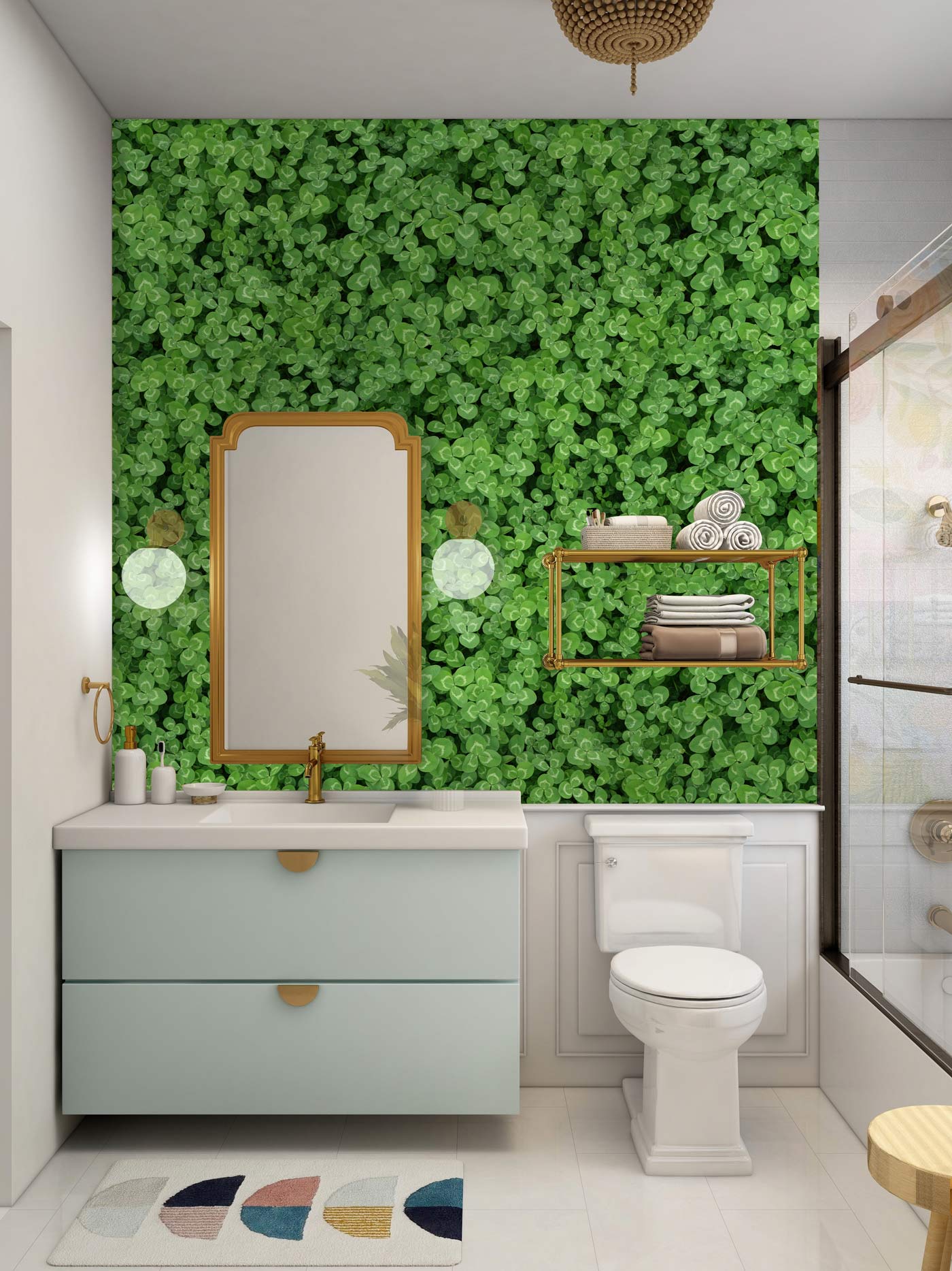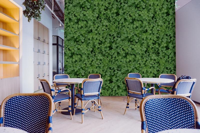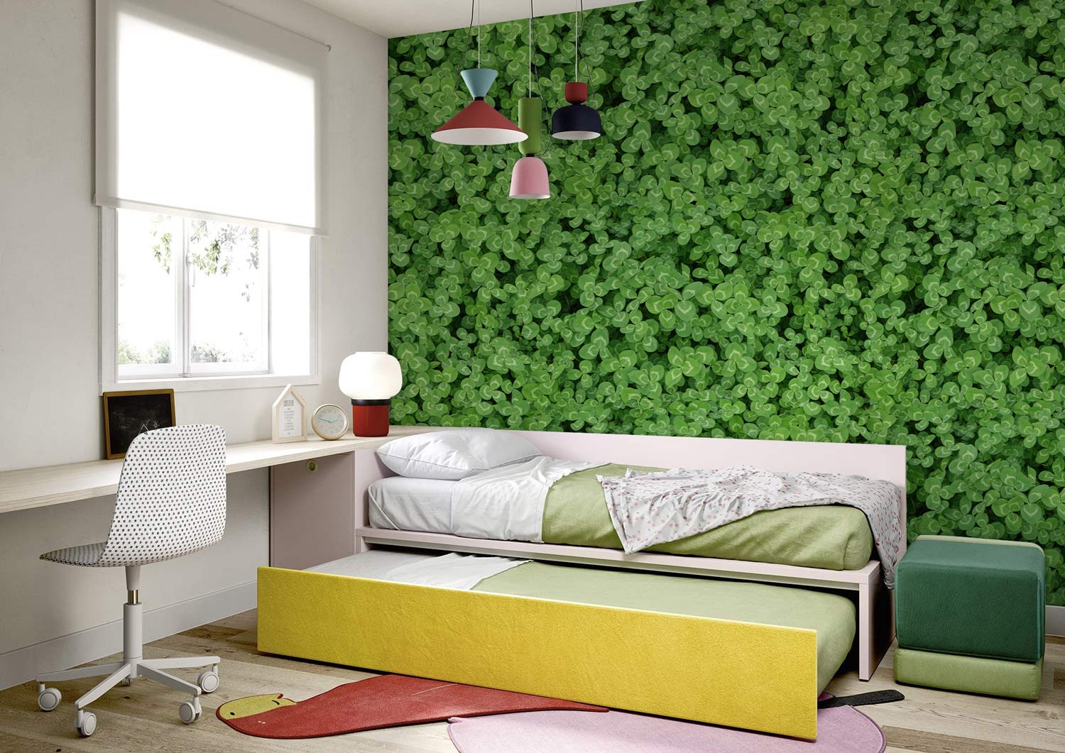 Rapprochez la nature de vous avec cette murale de papier peint de feuilles vertes. Ces conception de motifs de trèfle vert frais font une impression plutôt dramatique et feront sûrement une déclaration de nature et d'élégance dans votre maison. Ce superbe Ever Wallpaper vert sera incroyable dans votre salon, votre chambre ou votre salle à manger.