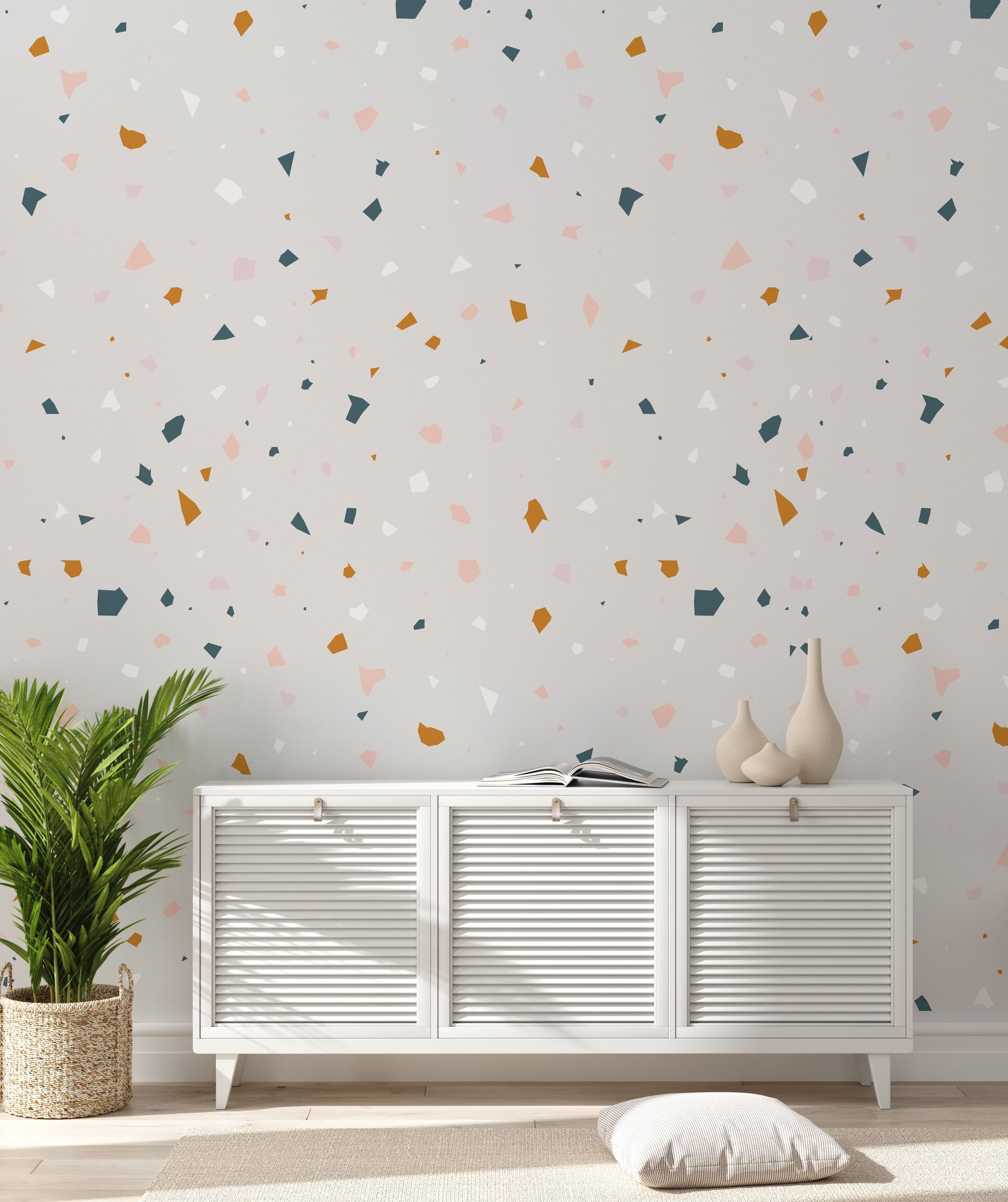 Obtenez le simple look des carreaux de terrazzo sur vos murs avec cette magnifique fresque peint pastel. Ce papier peint en terrazzo tendance créera un effet apaisant et ajoutera une grâce simple à votre salon, chambre, salle à manger, salle de bain et chambre pour enfants. Murale murale idéale qui fonctionne parfaitement avec tous les styles de meubles.