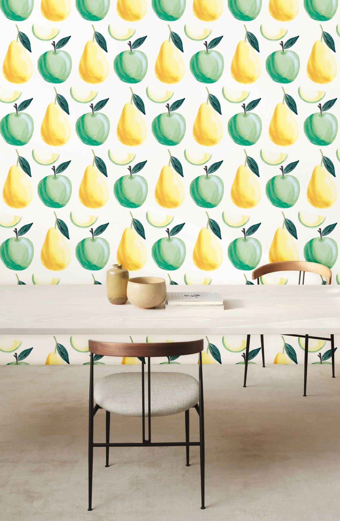 D'une taille impressionnante et d'un aspect réaliste, cette photo murale Pommes et Poires donne à l'espace une touche luxuriante de couleur et de fruité. Le design est plein de tons verts et jaunes, comme un verger au printemps. Le motif alterné de pommes et de poires crée un affichage accrocheur sur votre mur, tandis que les nuances de vert et de jaune vibrantes diffusent une véritable aura de fraîcheur dans la pièce. Imprimé sur un matériau de haute qualité, il donnera à votre cuisine ou à votre salle à manger un aspect étonnant et ravissant pour les sens.