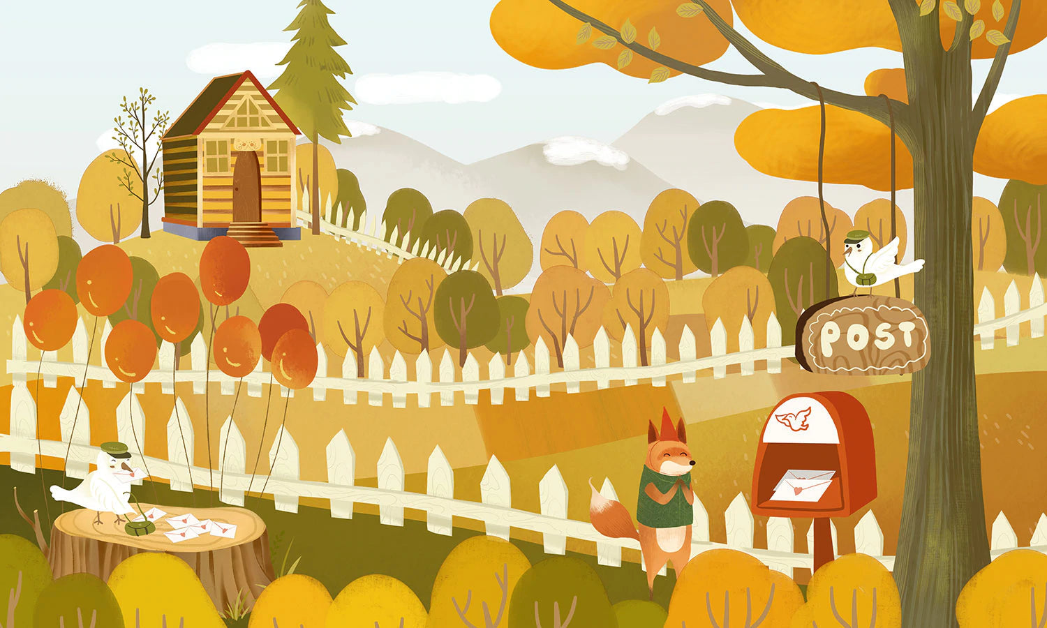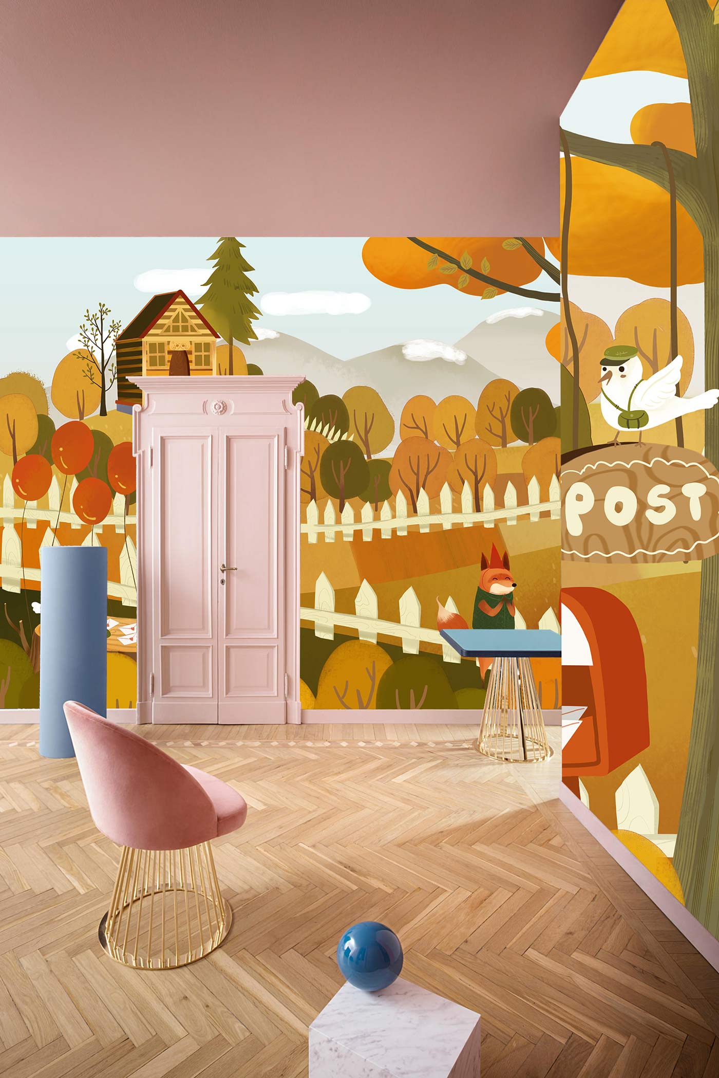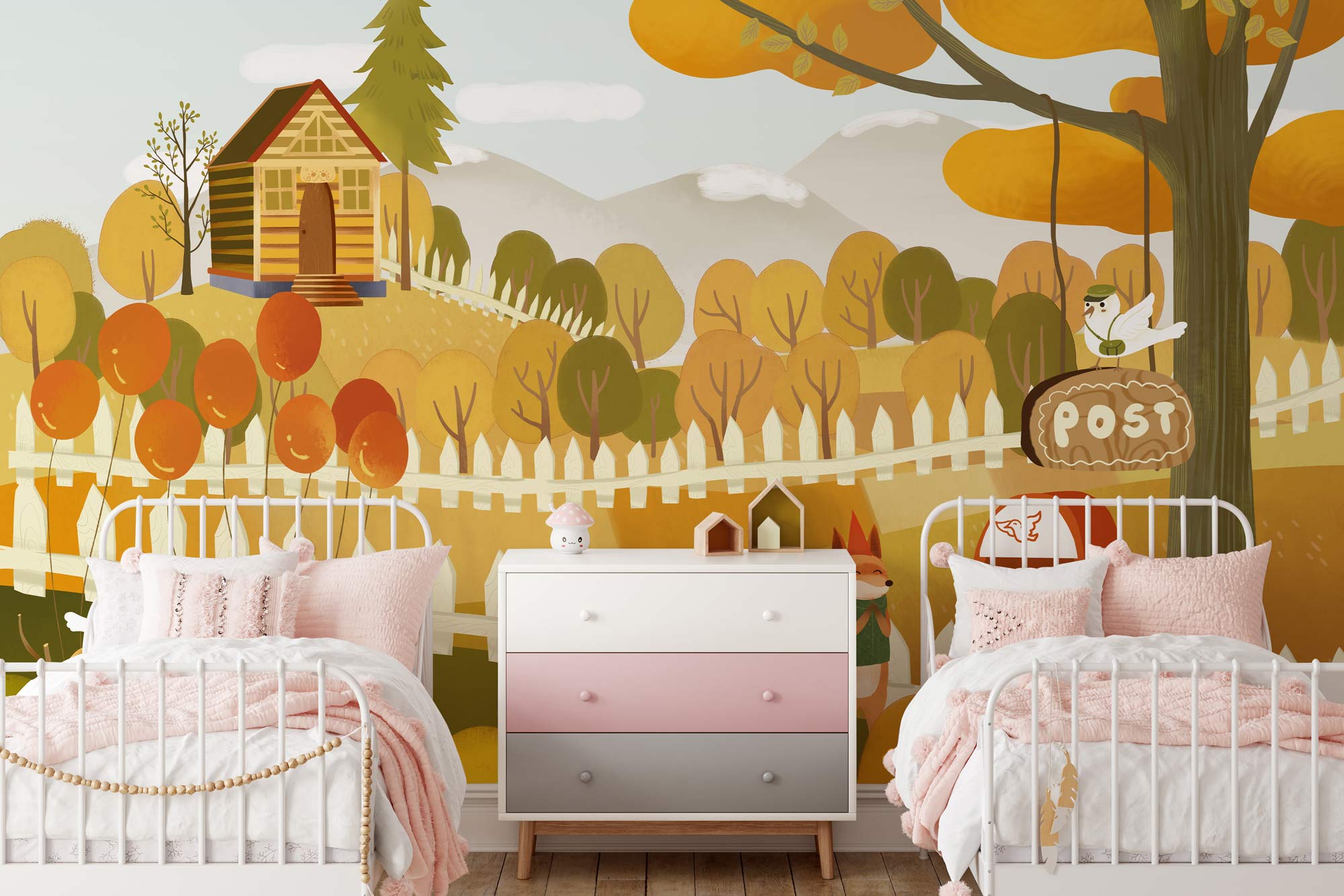 Cette jolie murale animale peint est une décoration idéale à utiliser comme arrière-plan. La belle et incroyable peinture de facteur d'animaux envoyant des lettres pour d'autres animaux dans la forêt sera parfaite pour la chambre et la salle de jeux de votre enfant. Rendu intéressant avec une atmosphère naturelle et une décoration murale rafraîchissante parfaite pour vos enfants.