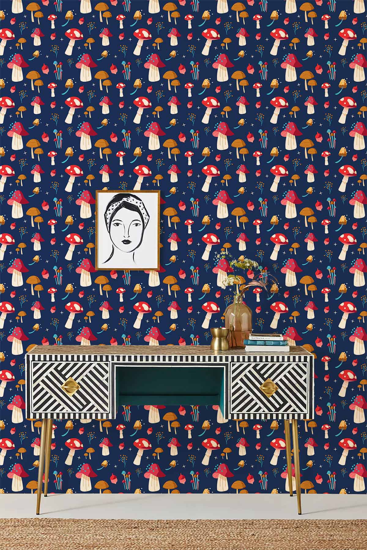 Purple Mushrooms Wallpaper Mural
