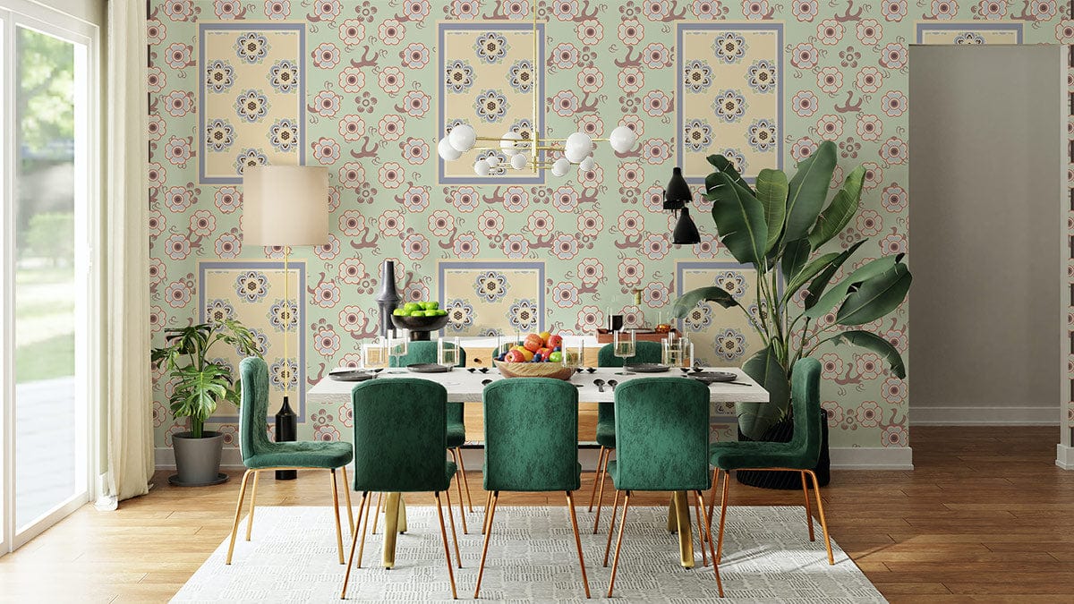 Donnez à votre espace un look frais et accueillant avec notre papier peint mural Rectangle et Fleurs. Idéal pour ceux qui veulent ajouter des motifs et de la couleur à leurs murs, notre arrière-plan au design simple présente des formes rectangulaires dans des tons de bleu avec des fleurs autour qui se démarquent par des touches de vert tendre. L'effet dramatique de cette peinture murale est une façon parfaite de revitaliser les murs de votre salon, cuisine ou salle à manger. Ce papier peint est facile à appliquer, et ses couleurs subtiles égaieront vos murs en un rien de temps !