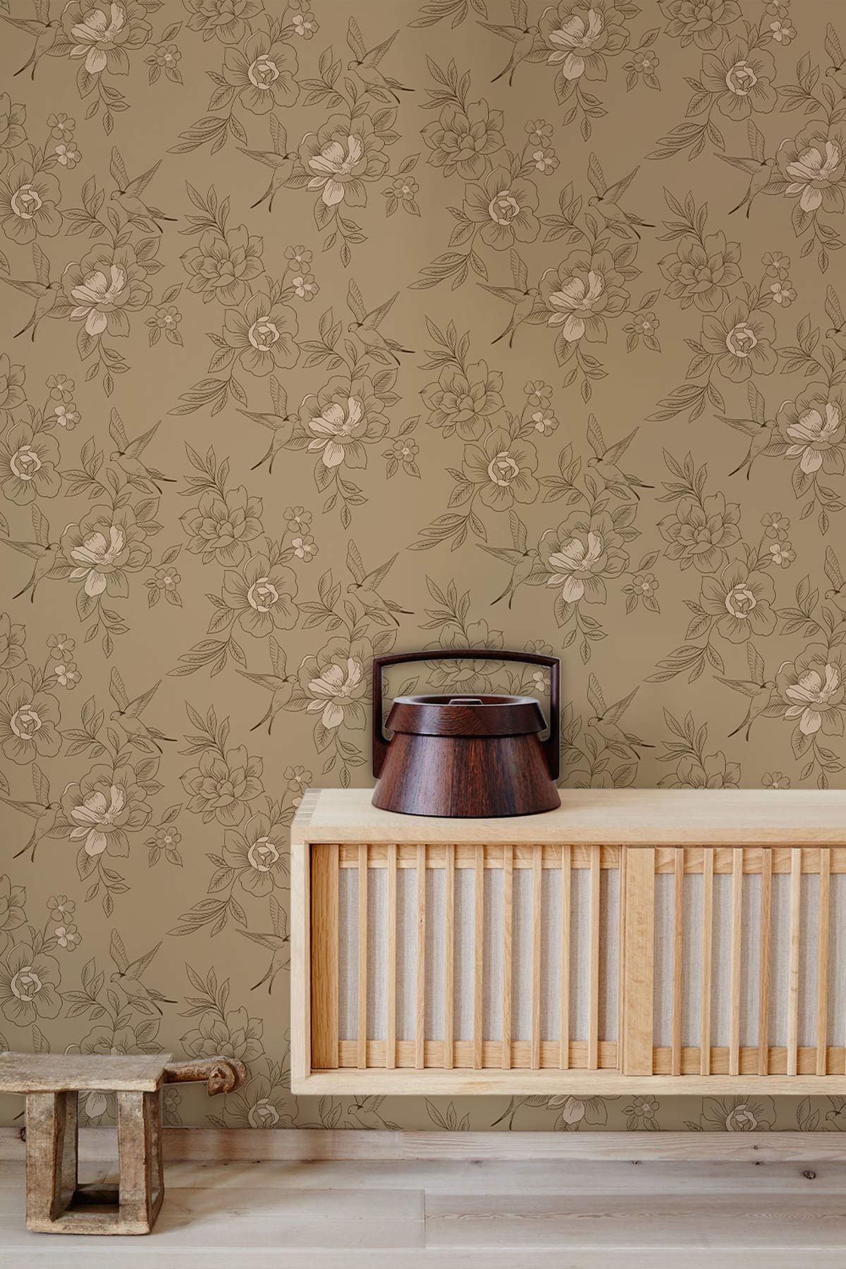 Ajoutez une teinte de fraîcheur avec ce papier peint de motif de fleurs répétitifs brun et une simple esthétique à vos intérieurs. Orner votre chambre, votre salon ou la salle à manger avec cette conception naturelle de papier peint botanique pour réorganiser votre espace. Fonctionne avec tous les types de styles de meubles.
