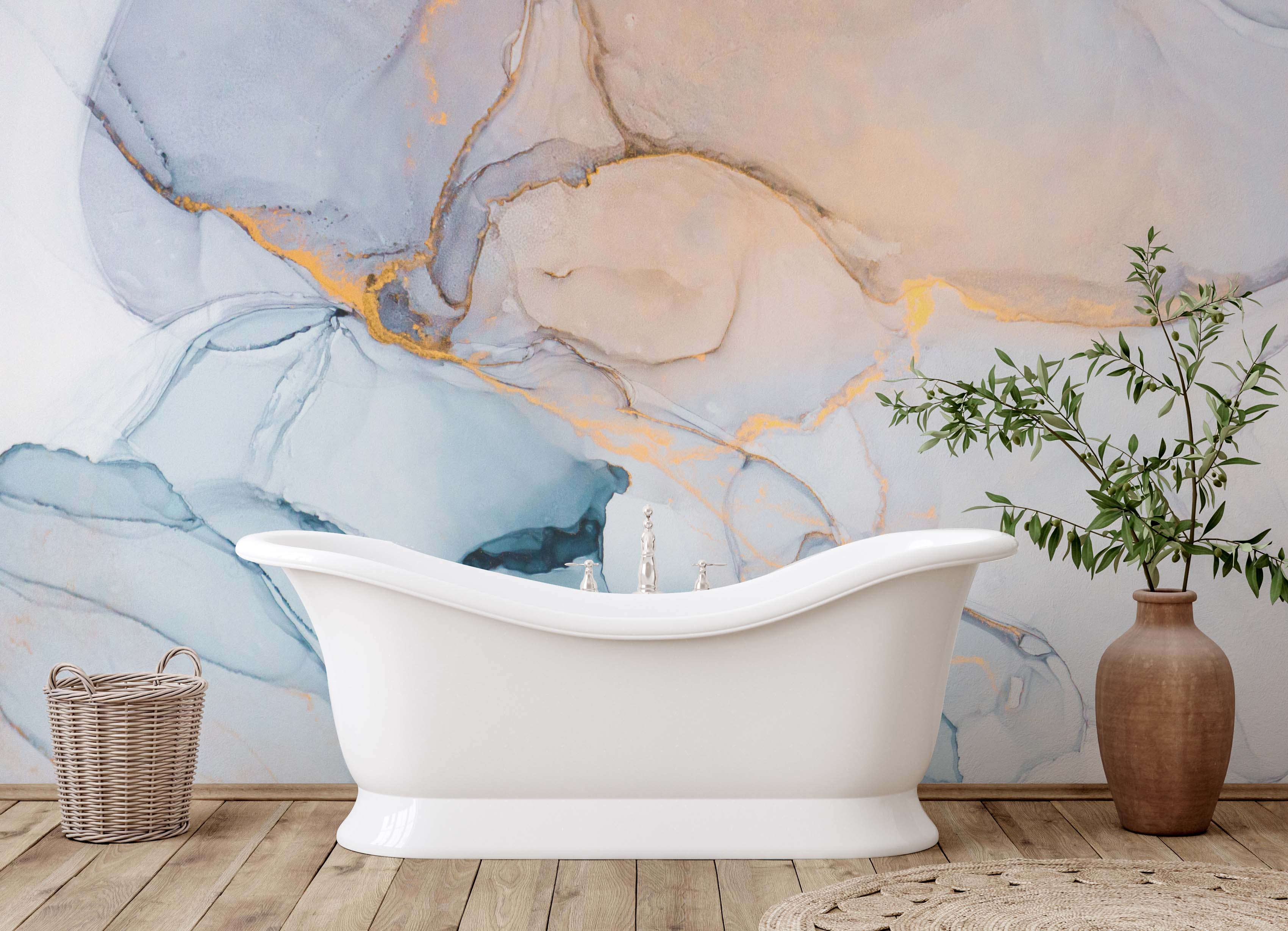 Si vous êtes à la recherche d'un papier peint élégant et rêveur qui peut s'adapter à toutes vos pièces et décorations d'art, alors ce rêveur bleu & Le papier peint en marbre doré est votre choix parfait. Ce revêtement mural en faux marbre conçu avec des tons doux de bleu et d'or créera une atmosphère confortable et paisible pour votre espace.