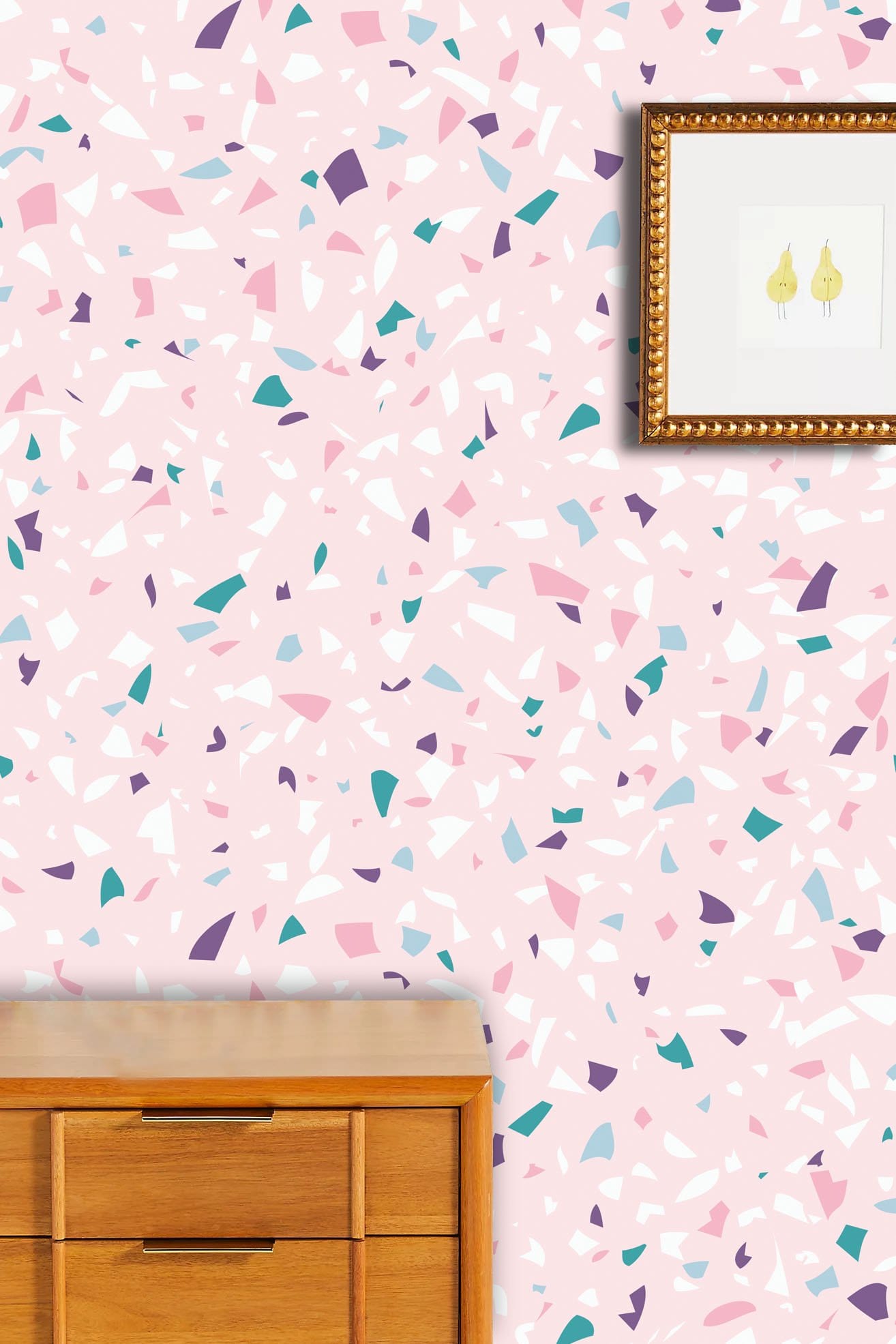 Obtenez le simple look des carreaux de terrazzo sur vos murs avec cette magnifique murale de papier peint rose pastel. Cette tendance? Le papier peint en terrazzo rose créera un effet apaisant et ajoutera une grâce simple à votre salon, chambre, salle à manger, salle de bain et chambre pour enfants. Murale murale idéale qui fonctionne parfaitement avec tous les styles de meubles.