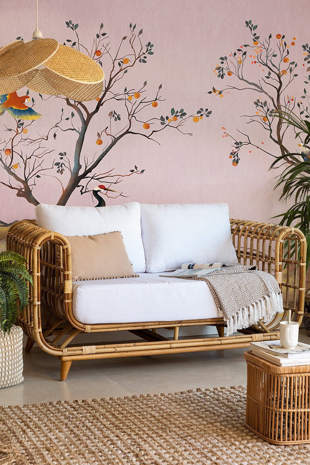 Sentez ce moment paisible avec cette murale de papier peint de style vintage. Cette murale murale est conçue avec des arbres, des oiseaux et de l'ampli; Grane en fond de ton rose, qui apportera sûrement un look à l'ancienne mais élégant dans votre espace. Fond mural parfait qui fonctionne bien avec toute votre chambre, salon, couloir et salle à manger.