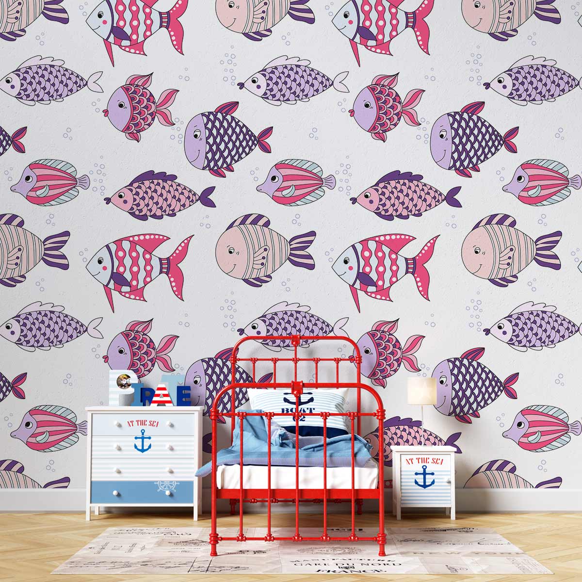 Ces beaux poissons roses et violets sont adorables. Gardez la chambre de vos filles colorée. Ces belles teintes les aideront à adorer encore plus leur espace. Permettez à vos filles de compter et de décrire leur poisson préféré. Demandez-leur les chiffres globaux des poissons et où ils pensent qu'ils vont. Gardez votre enfant impliqué en demandant ce qu'il pense, ce que cela signifie pour eux et comment il le considère. Ce Ever Wallpaper sera adorable dans votre crèche, où chaque enfant peut nommer et garder un poisson comme animal de compagnie.