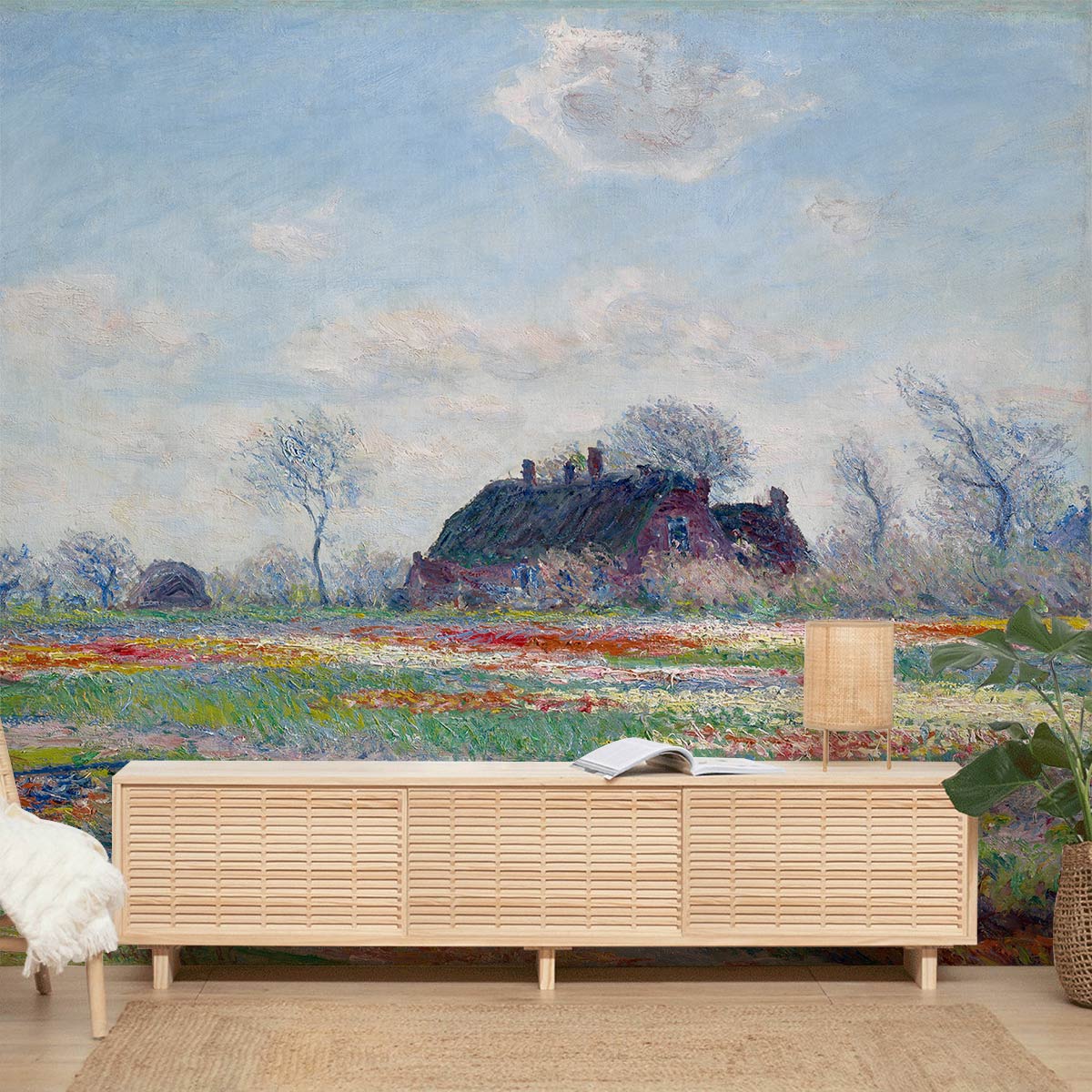 Soigneusement reproduite sur une peinture murale, la peinture Tulip Fields est une expérience romantique avec une touche de nostalgie. Le motif de notre papier peint mural Tulip Fields représente des tulipes en pleine floraison dans des teintes jaunes et rouges vibrantes, entourées de marguerites blanches, d'herbes vertes et d'un ciel bleu, qui mettent en valeur la beauté de cette scène estivale parfaite. Avec un motif floral accrocheur et des nuances de rouge, d'orange et de jaune qui vous rappellent le soleil du printemps, ce papier peint mural apportera chaleur et charme à n'importe quelle pièce de votre maison.
