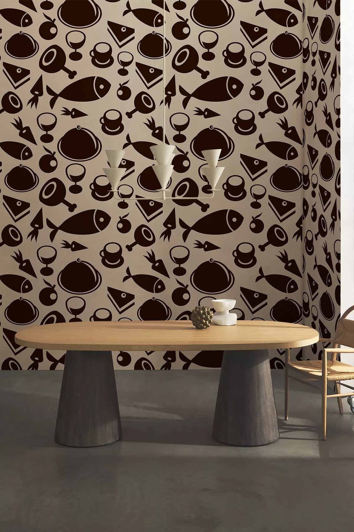 Il est temps d'obtenir votre salle à manger ou votre cuisine un nouveau look! Ce papier peint de nourriture et de plats attrayants sous un fond neutre est un design polyvalent parfait pour transformer l'espace ennuyeux en quelque chose d'unique et accrocheur. Pourquoi ne pas l'essayer et associez-vous à des décorations de maison modernes.