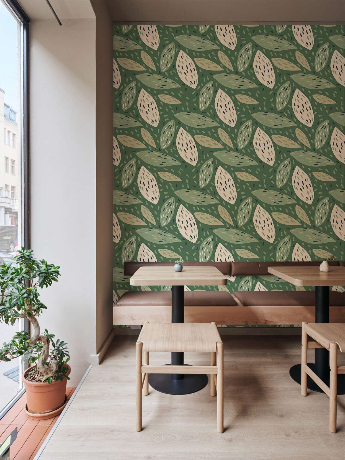 Feuilles tropicales vertes et blanches papier peint mural