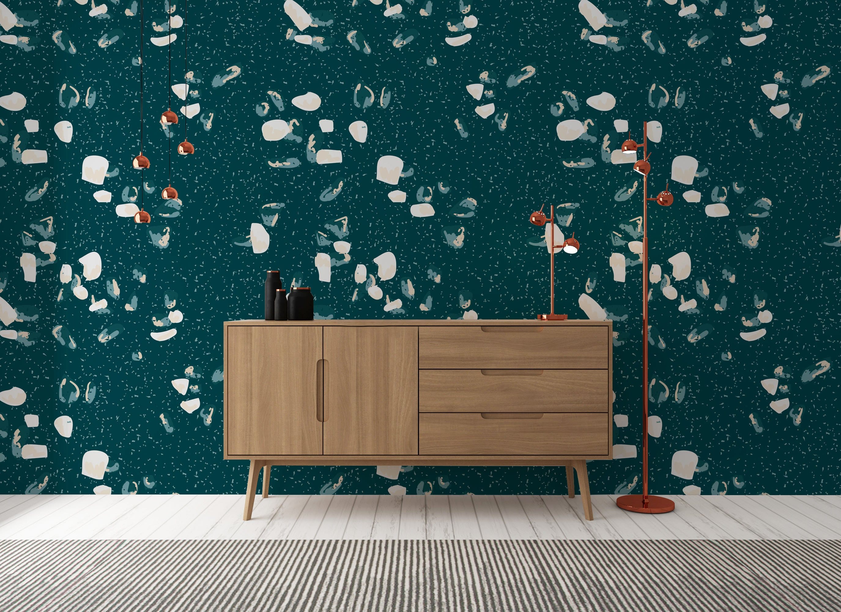 Obtenez le simple look des carreaux de terrazzo sur vos murs avec cette magnifique murale de papier peint. Ce papier peint en terrazzo bleu vert tendance créera un effet apaisant et ajoutera une grâce simple à votre salon, chambre, salle à manger, salle de bain et chambre pour enfants. Murale murale idéale qui fonctionne parfaitement avec tous les styles de meubles.