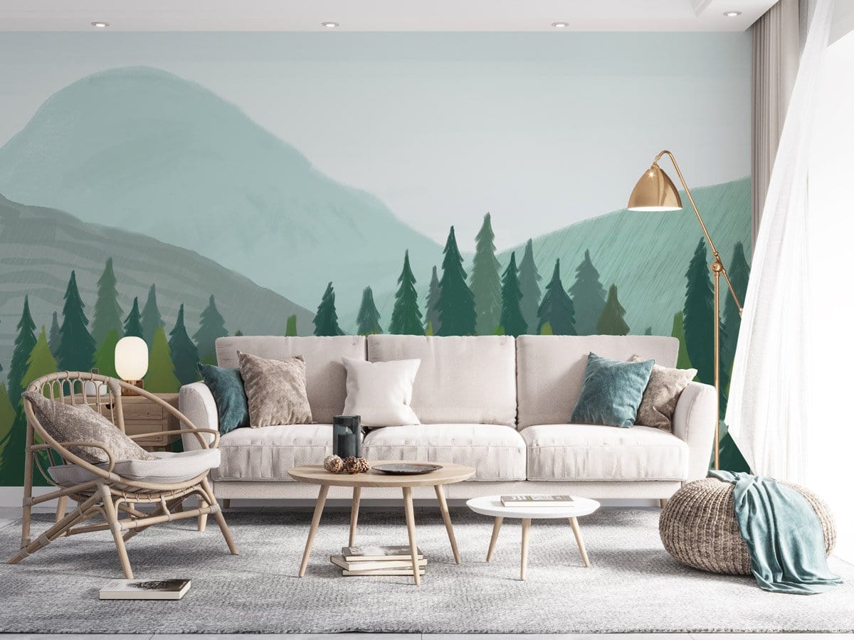 Créez un thème naturel à la maison avec ce papier peint de montagne de forêt aquarelle verte. Avec notre texture de papier premium et nos techniques d'aquarelle, ce design unique créera une atmosphère paisible tout en gardant l'espace minimal. Pourquoi ne pas utiliser ce papier peint forêt dans votre salon, chambre ou salle à manger pour rehausser votre décoration murale.