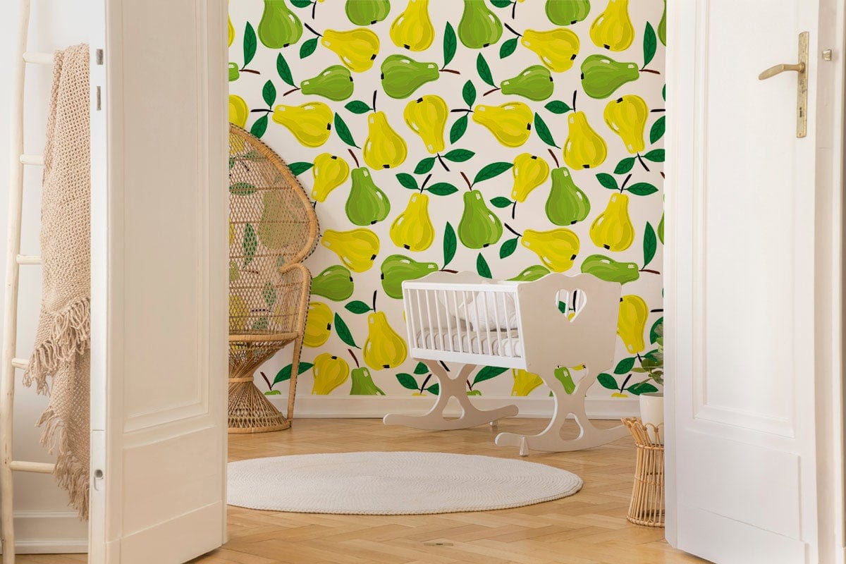 Remplissez votre place de couleurs et faites-la si vibrante de ce papier peint mural de jaune et vert Pears qui prendra votre place à différents niveaux d'élégance. Cette conception rendra l'endroit plus large et très brillant et plein d'énergie. Style la peinture murale avec des rideaux en mousseline blanc pour un look simple préfet.